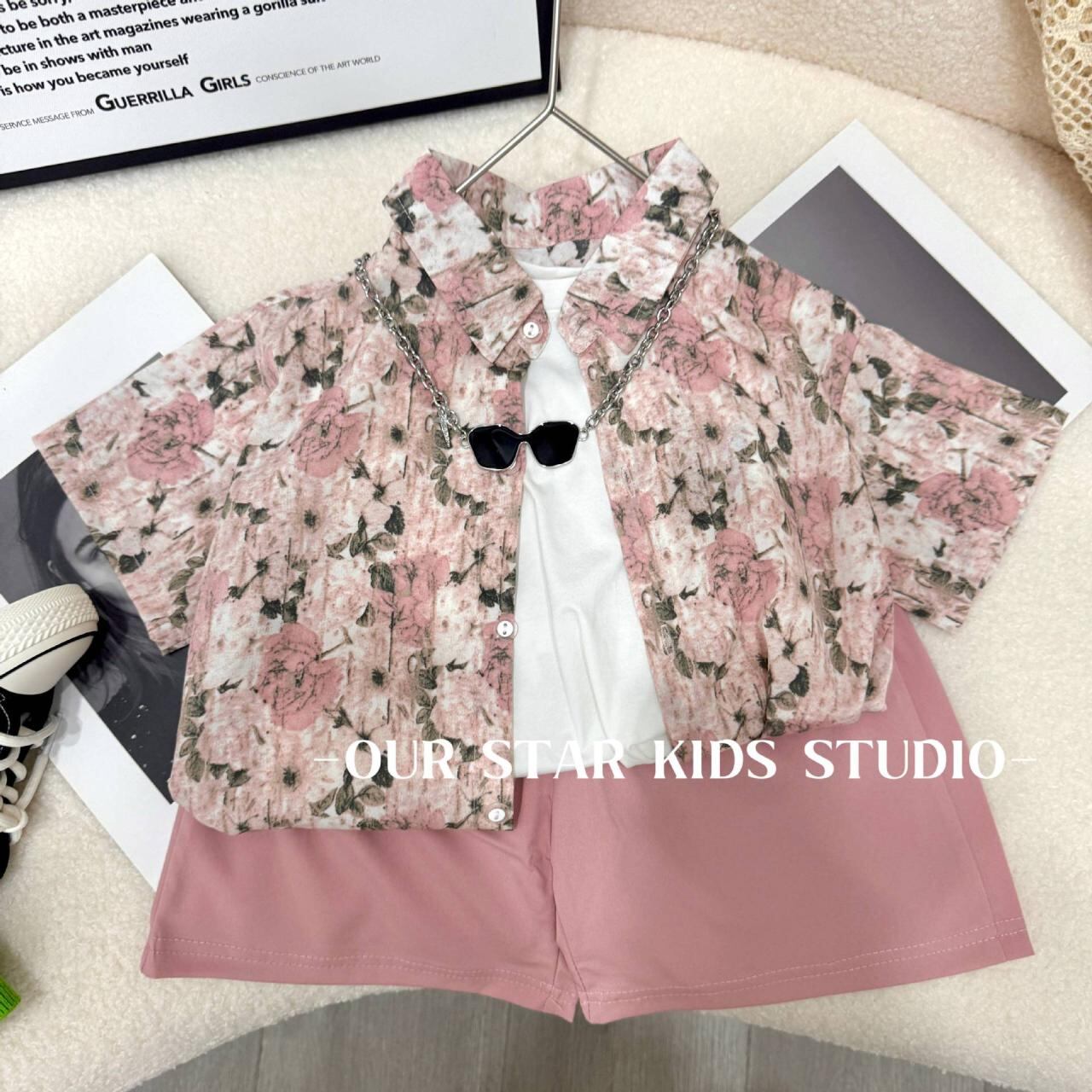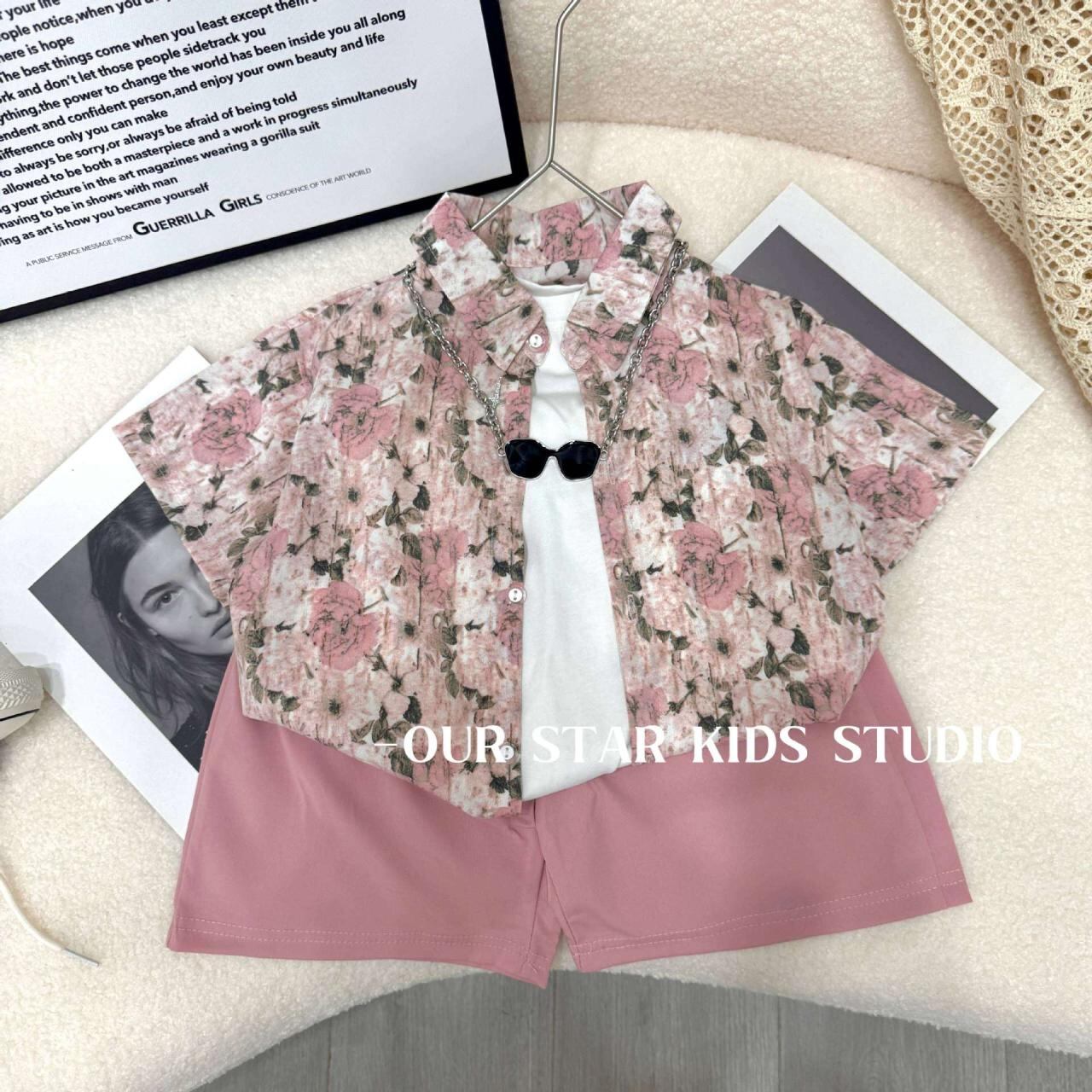 シャツ 男の子用 半袖シャツ ショートパンツ 2点セット 子供服 薄手 花柄 普段着 部屋着