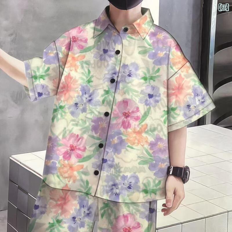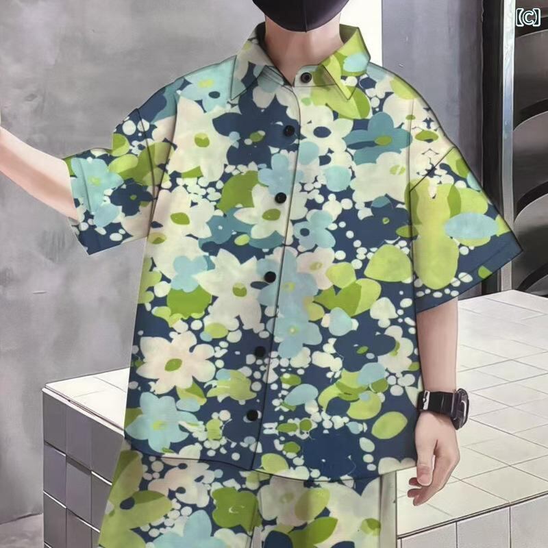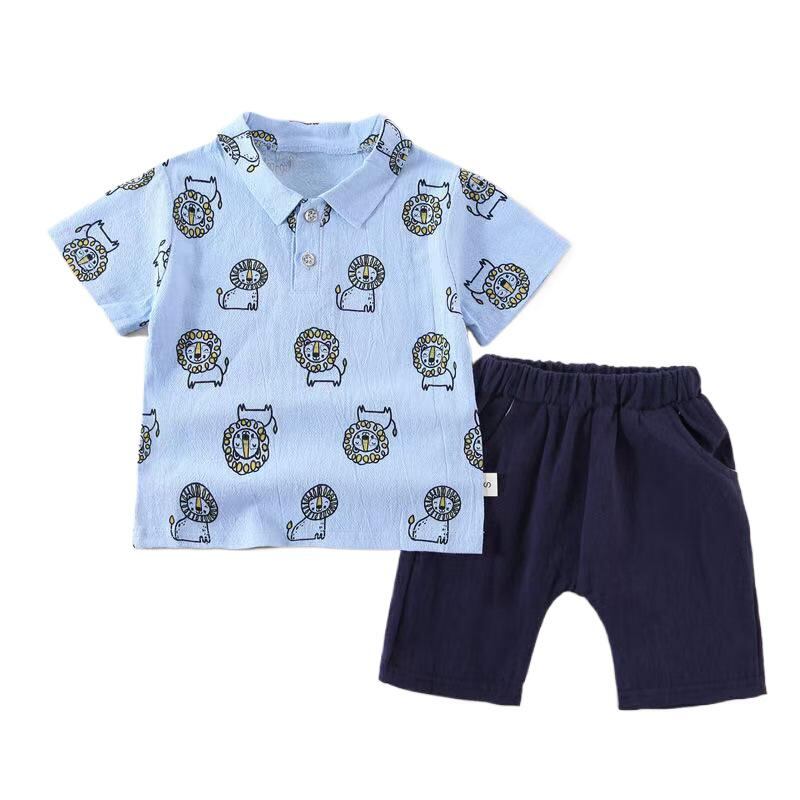 キッズ 男の子用 半袖シャツ パンツ 上下セット 小柄プリント 薄手 ベビー服 幼児 子供服 カジュアル 春夏 綿