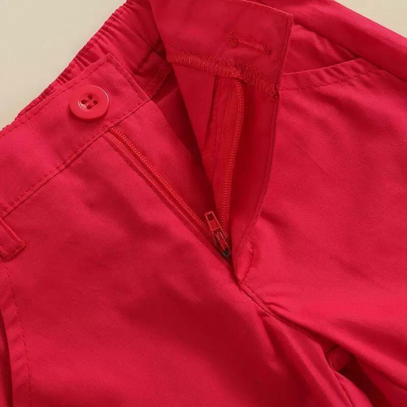 キッズ 男の子用 フォーマルセットアップ 半袖シャツ ショートパンツ 上下セット 綿 柔らかい 通園 通学 結婚式 発表会 レッド系