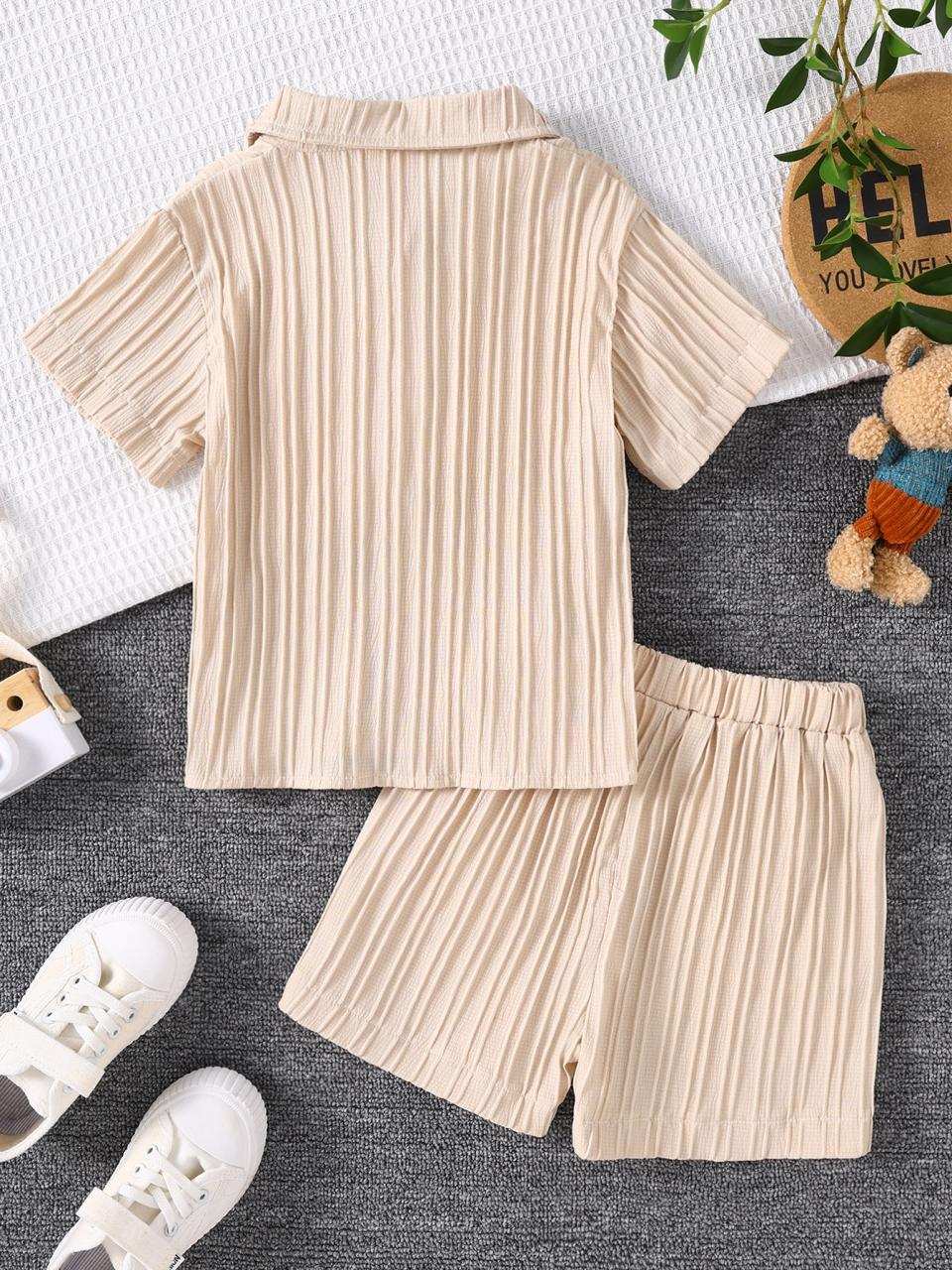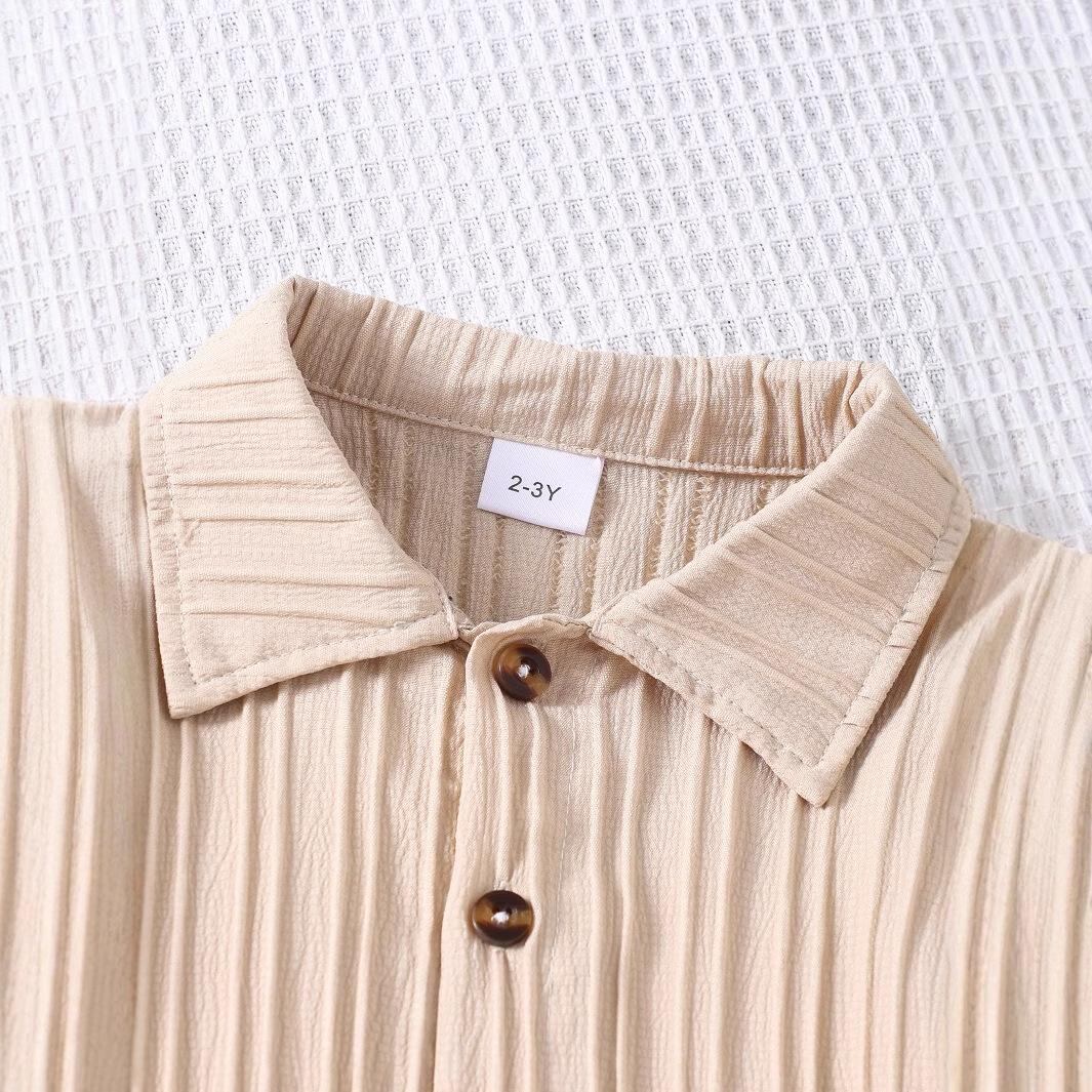 キッズ 男の子用 半袖シャツ ショートパンツ 2点セット 幼児 普段着 ポリエステル カキ色