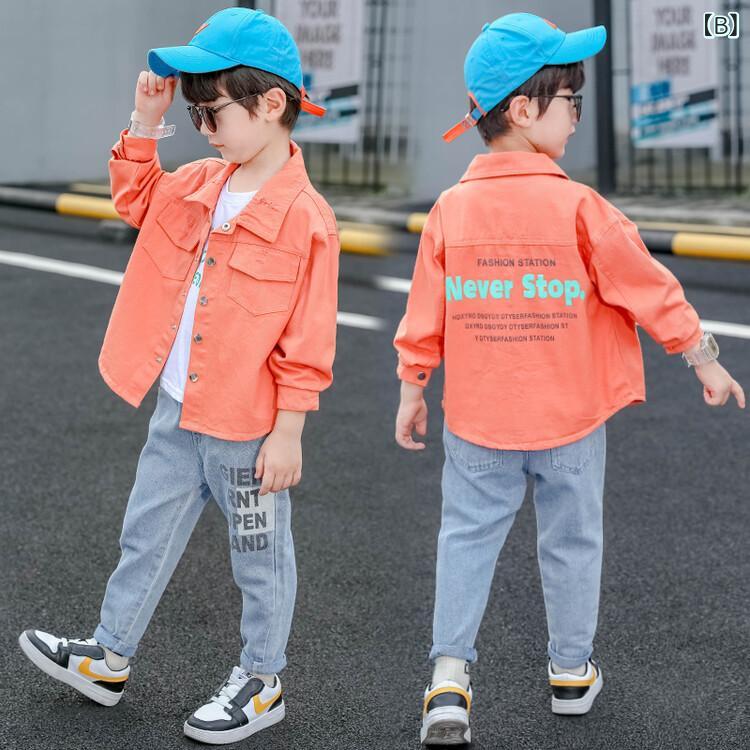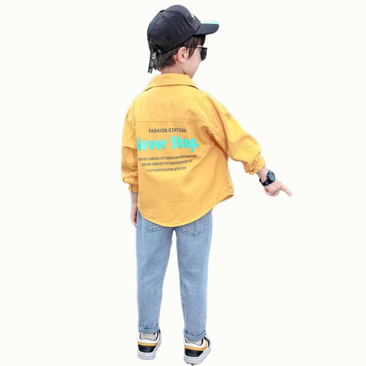 子供服 春秋 セットアップ 男の子 カジュアル シャツ 3点セット 長袖 長ズボン 綿 中大童 黄色 オレンジ 110cm 120cm 130cm 140cm 150cm 160cm