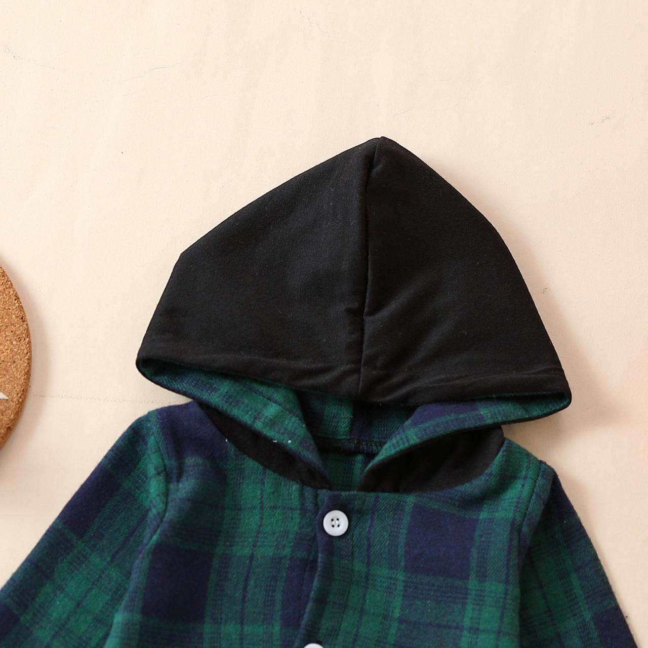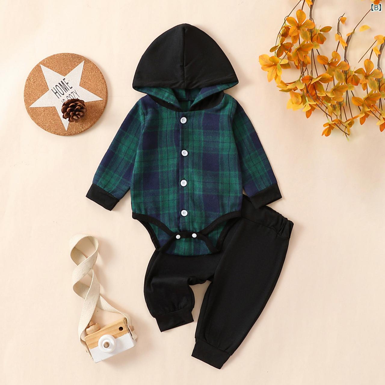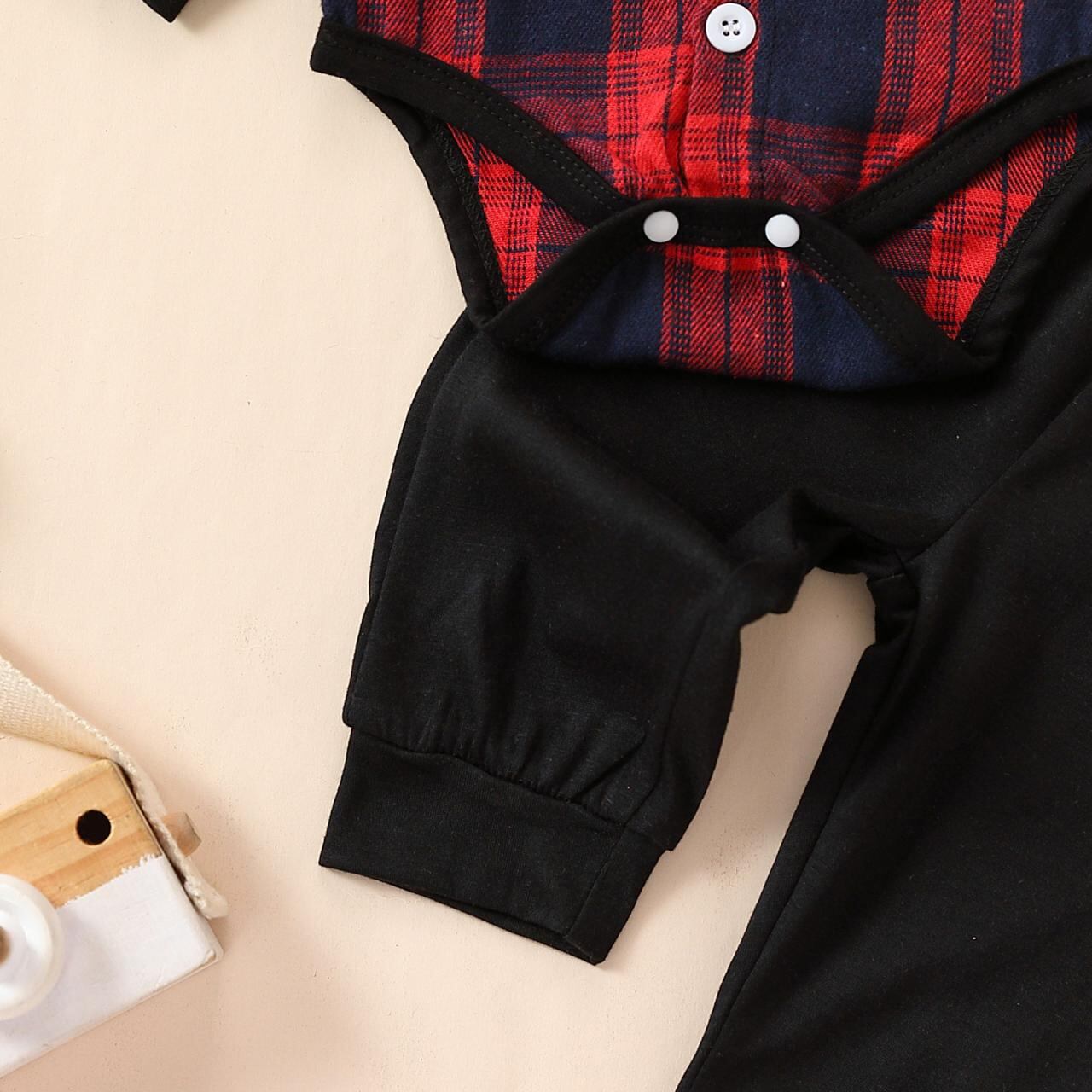 ベビー服 中性 上下セット 長袖シャツ ハーネス付き ロンパース 無地 カジュアルパンツ 2点セット 綿 格子柄 赤 緑 春秋 幼児
