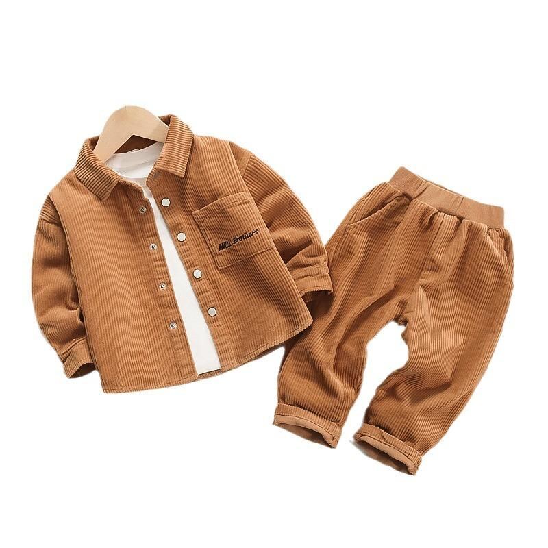 シャツ キッズ 男の子 コーデュロイ セットアップ 春秋 長袖 長ズボン 幼児 普段着 ベージュ系 ホワイト系