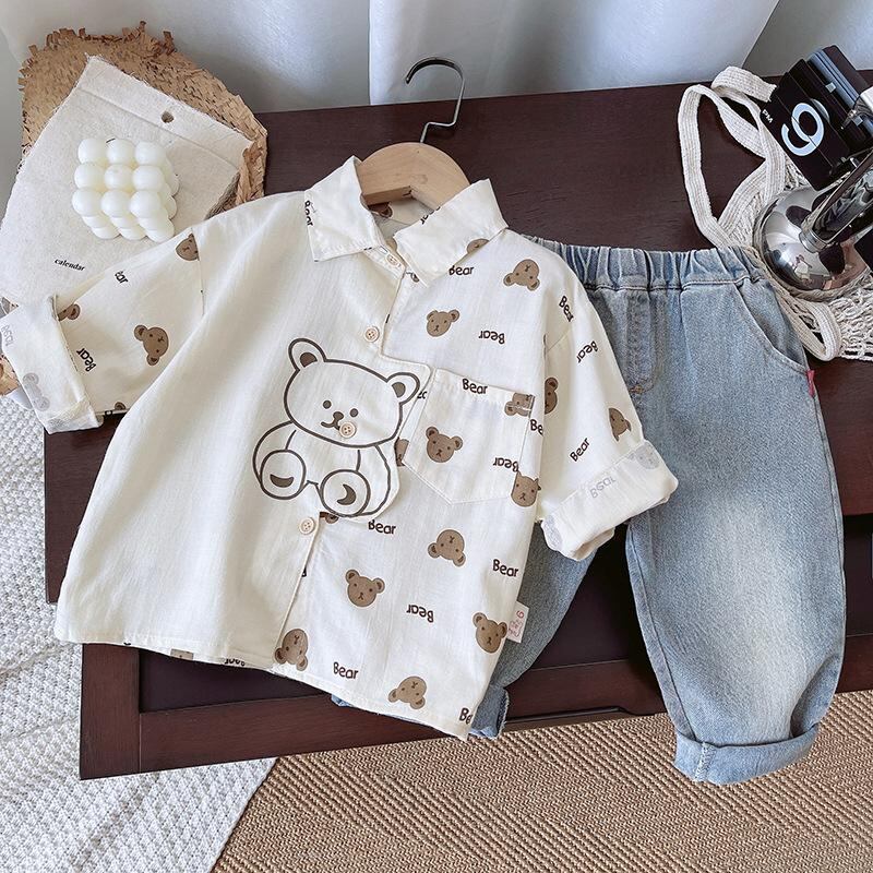 キッズ 男の子 シャツ デニムパンツ 2点セット 秋物 幼児 子供服 長袖 カジュアル 普段着