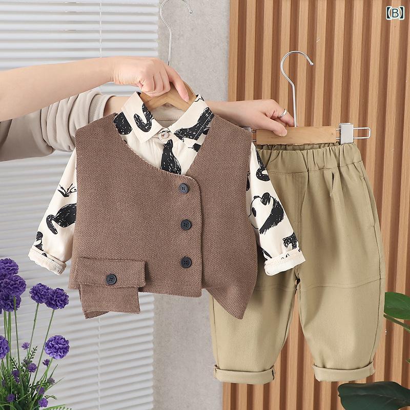 キッズ 男の子 ベスト シャツ パンツ 3点セット 春秋 上下セット 子供服 コットン 快適 カートゥーン 80 90 100 110 120cm