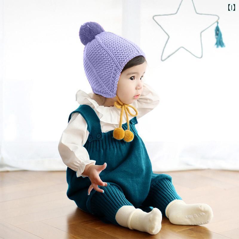ベビー ニット背帯パンツ 娃娃襟 カットソー 2点セット 春秋 赤ちゃん 毛糸パンツ フリル襟 シャツ 上下セット