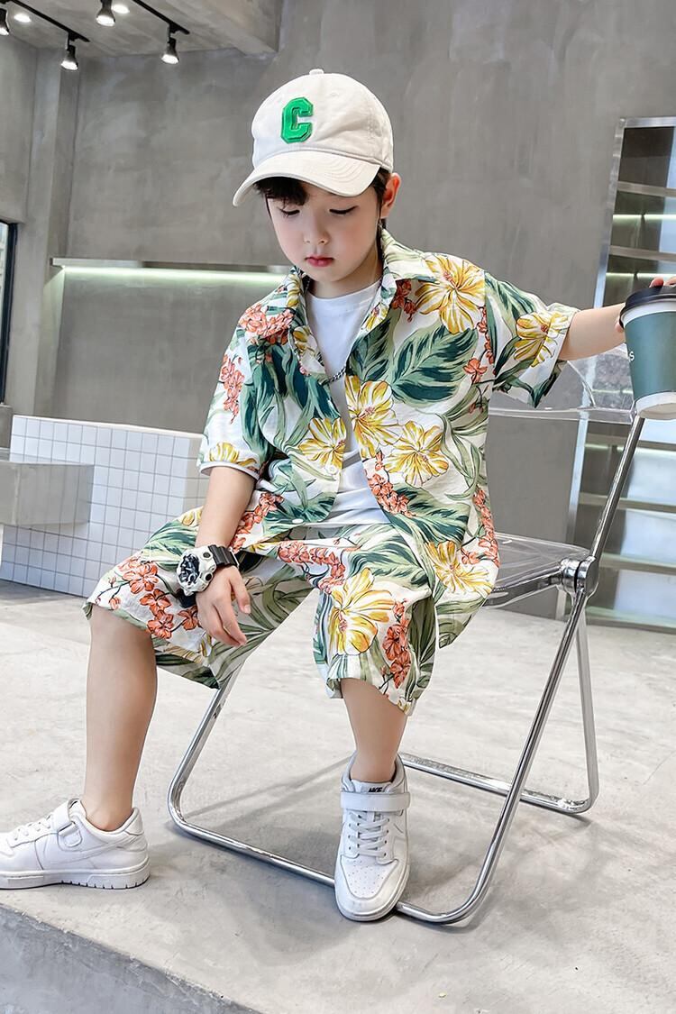 キッズ 男の子 アロハシャツ ハーフパンツ セットアップ 子供用 リゾート ビーチ 薄手 半袖 シャツ ショートパンツ 上下セット おしゃれ かわいい ポリエステル
