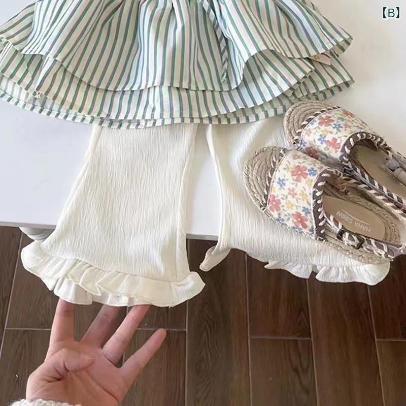 キッズ ベビー服 夏物 上下セット ストライプ柄 シャツ ラッパパンツ 薄手 コットン かわいい 普段着 韓国風 73CM 80cm 90cm 100cm 110cm 120cm
