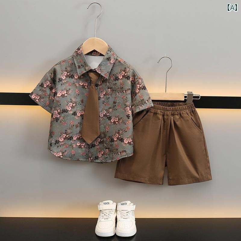 キッズ 半袖シャツ ショートパンツ 上下2点セット 夏服 子供服 男の子 幼児 薄手 花柄 カワイイ 接触冷感
