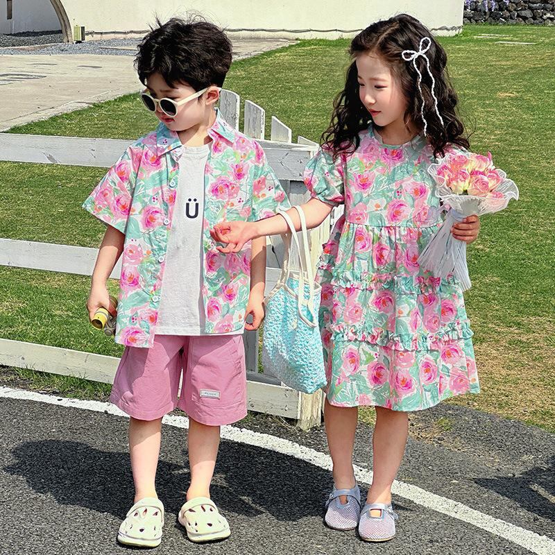 子供服 半袖シャツ & パンツ セットアップ または ワンピース リゾートウェア ビーチウェア 花柄 綿100% 薄手 ピンク系 ガールズ ボーイズ 90cm 100cm 110cm 120cm 130cm 140cm 150cm 160cm