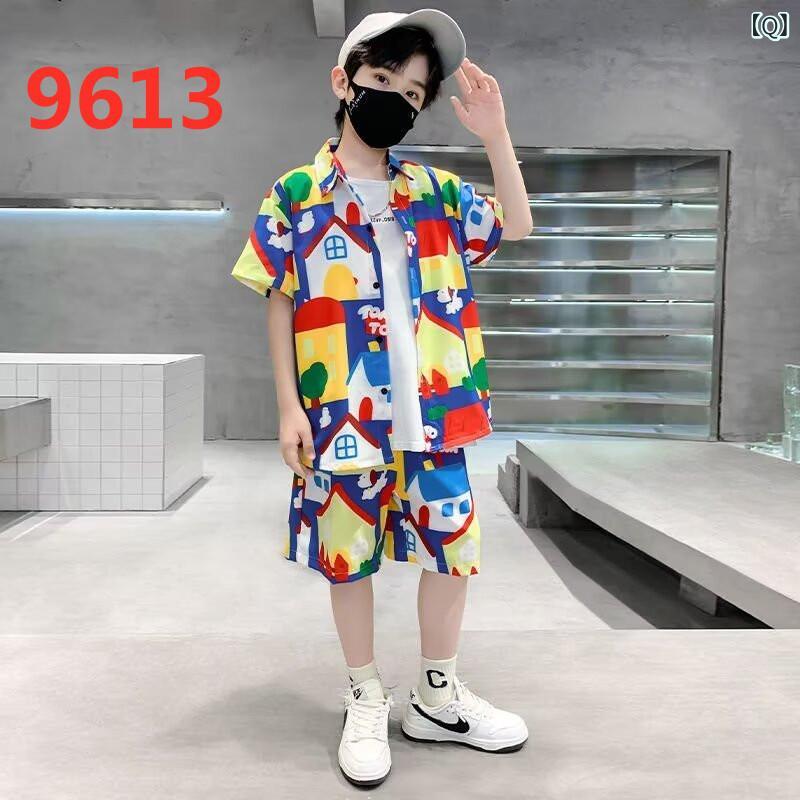 キッズ 夏 アロハシャツ セットアップ 男の子 ハワイアン ビーチ リゾート 旅行 子供用 シャツ ショートパンツ 上下セット 2点セット ポリエステル 薄手 通気性 個性的
