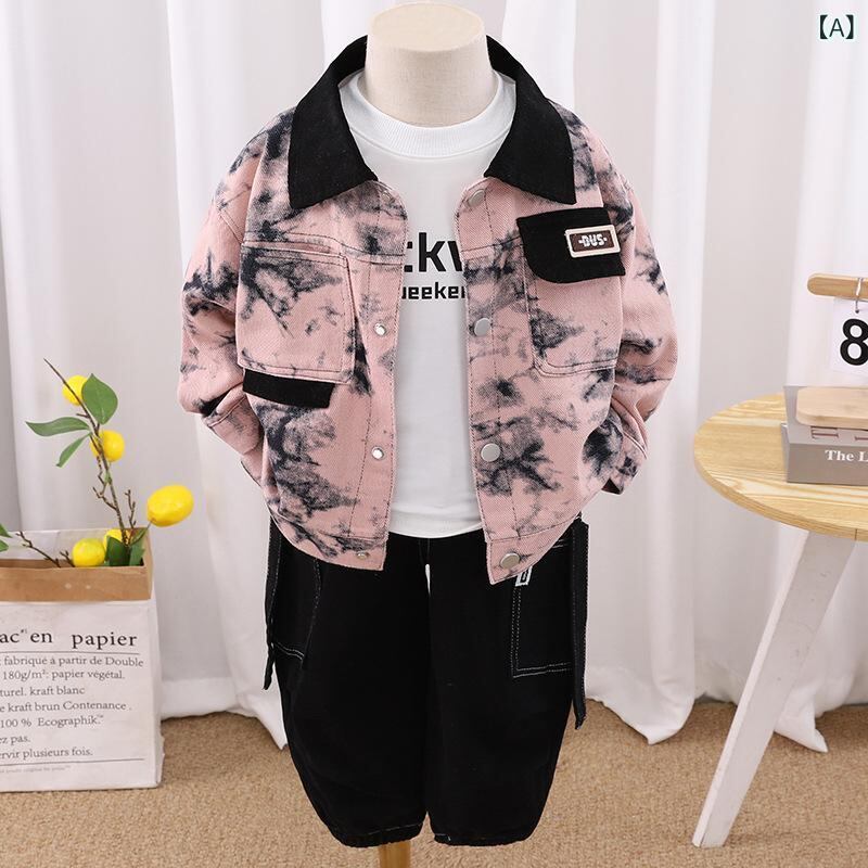 キッズ 男の子 シャツ パンツ カーディガン 3点セット 春秋 上下セット 長袖 綿 100 80 90 100 110 120 ピンク イエロー 普段着 部屋着