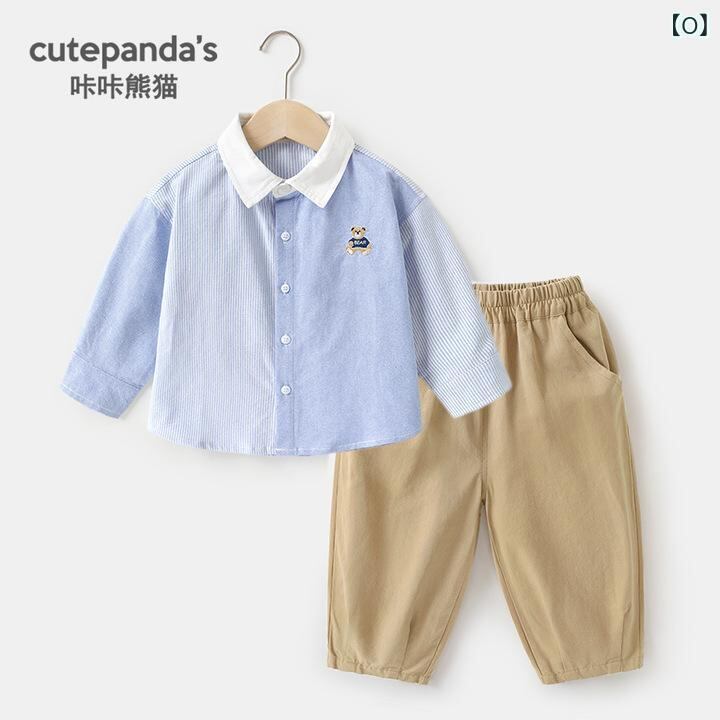 キッズ セットアップ 春秋物 男の子 シャツ パンツ 上下セット 2点 長袖 綿 通園 カジュアル