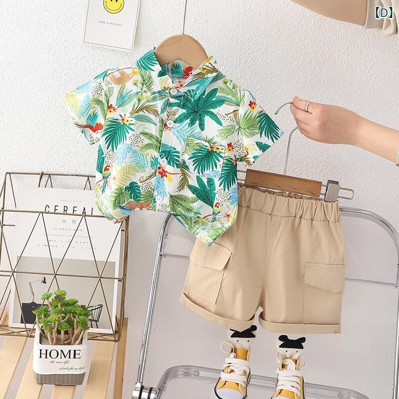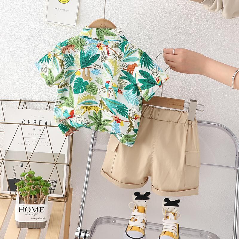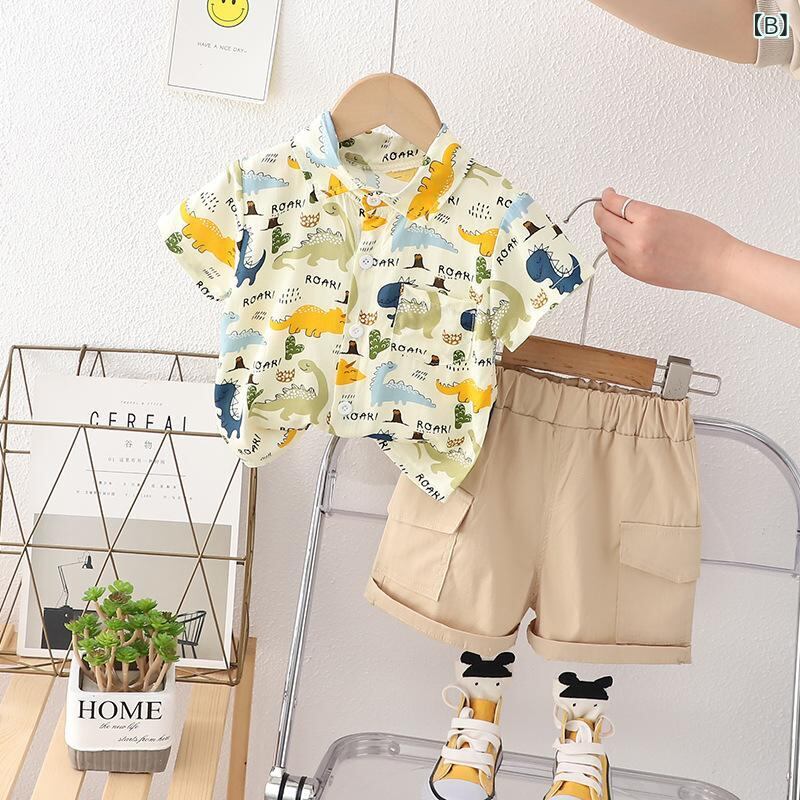 キッズ ベビー服 上下セット 半袖シャツ ハーフパンツ コットン 恐竜柄 カジュアル 薄手 通気性 快適 普段着