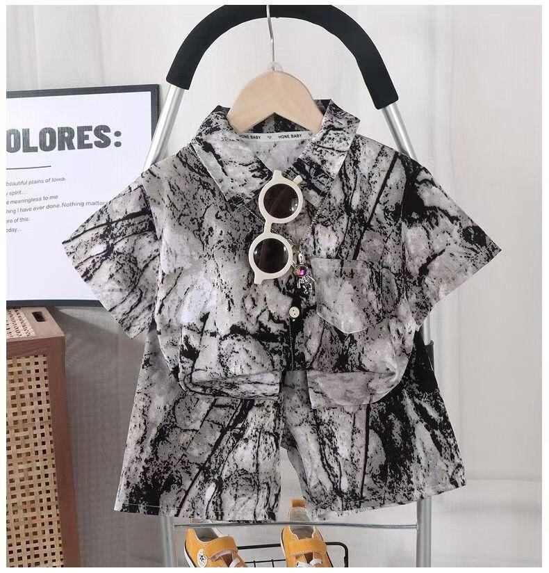 シャツ キッズ 男の子 ストライプ 半袖 ハーフパンツ 上下セット 薄手 子供 赤ちゃん 中大童 プリント ビーチ リゾート 綿 混紡 春夏