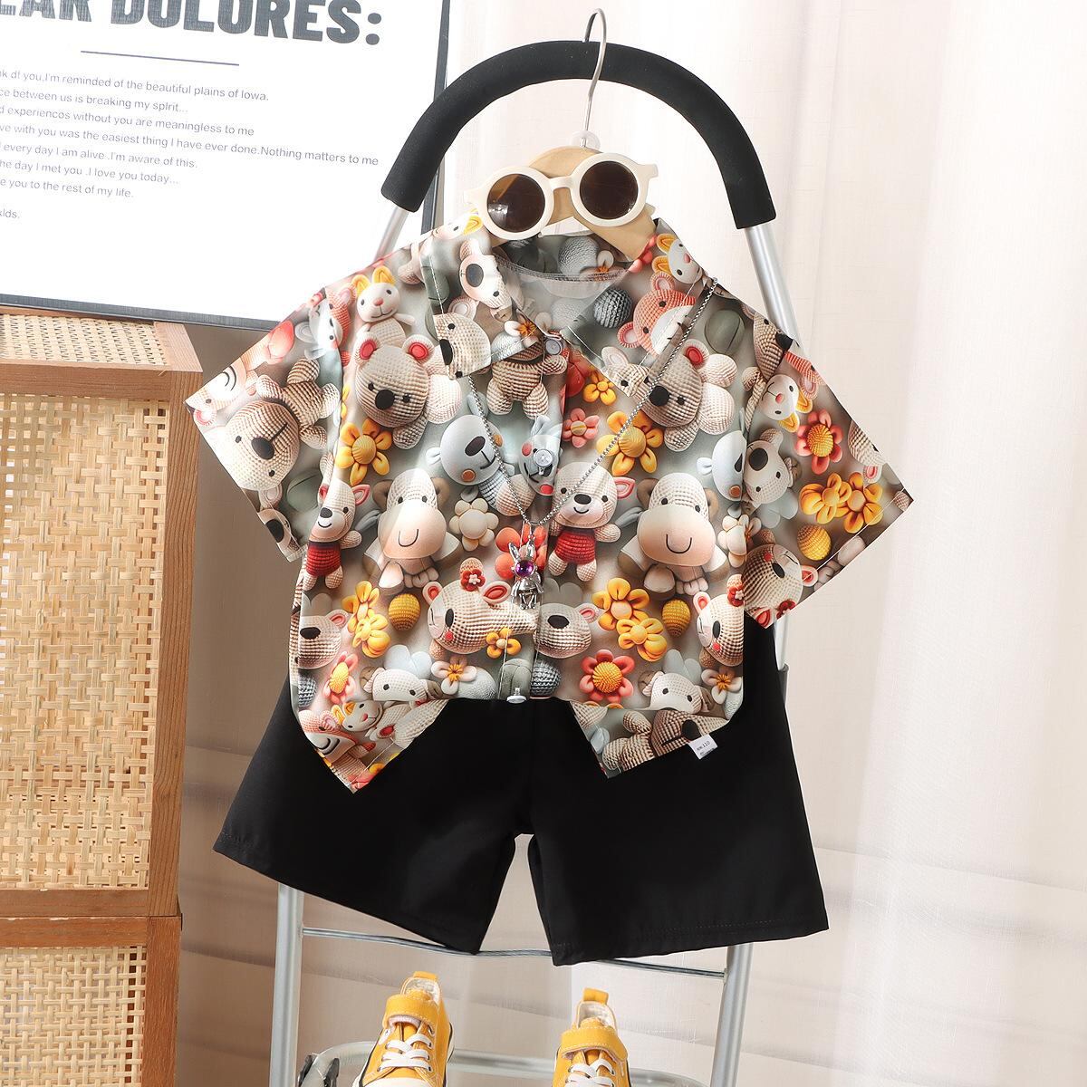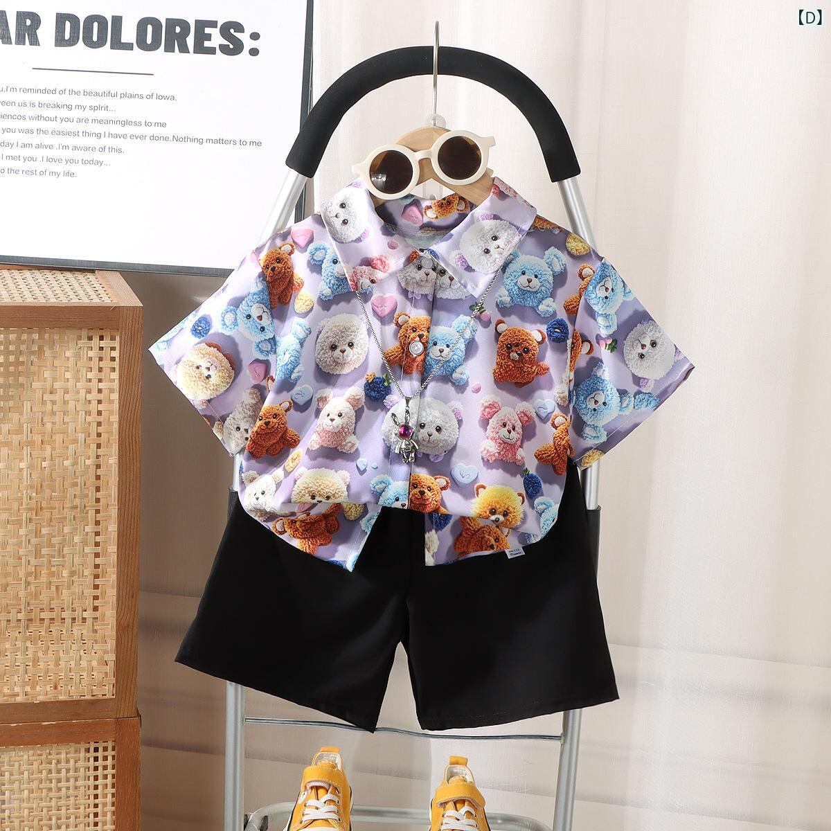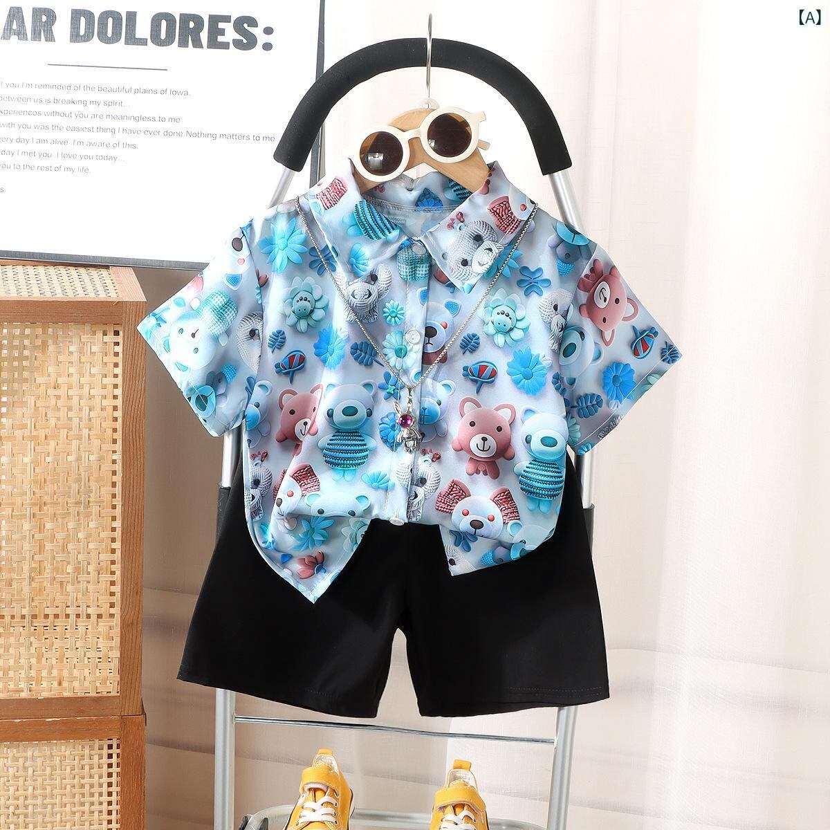 シャツ キッズ 男の子 半袖 短パン セットアップ 子供服 夏 3Dプリント カジュアル 薄手 襟付き 韓国風 80cm 90cm 100cm 110cm 120cm 130cm 140cm 150cm 160cm