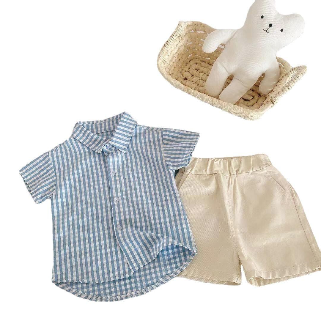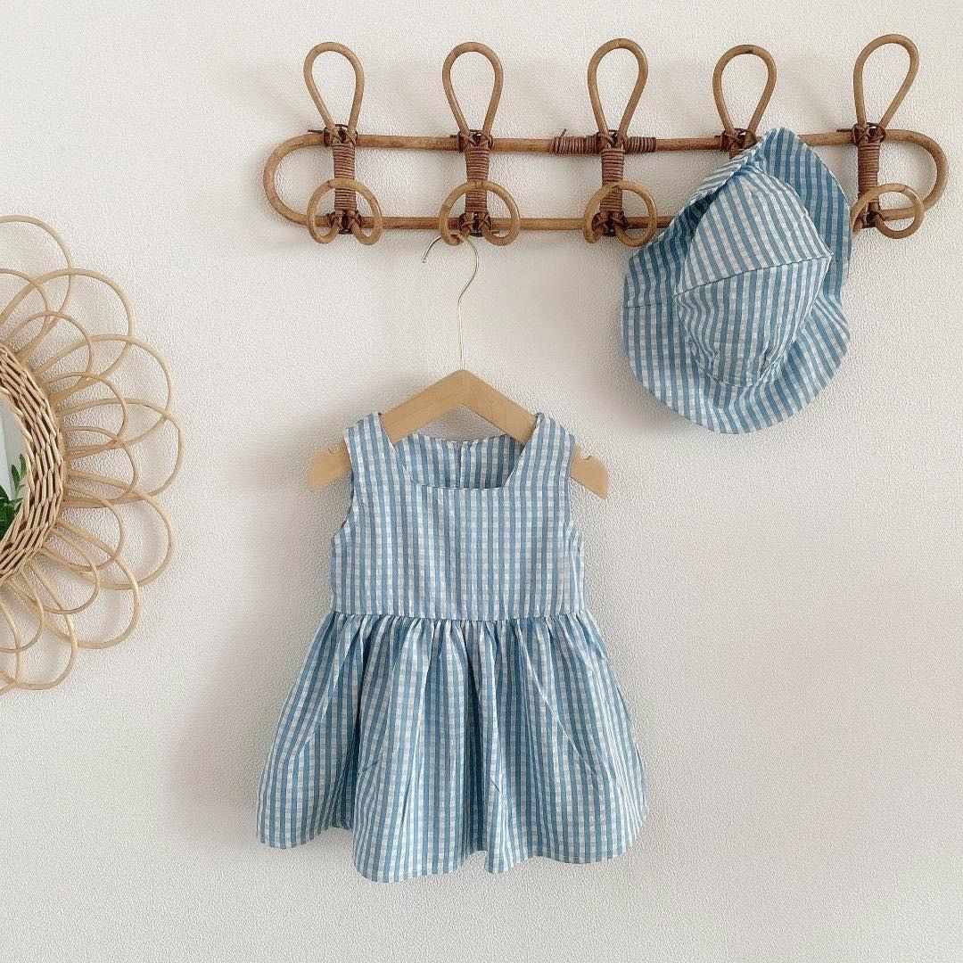 ワンピース ベビー 子供服 格子柄 半袖 短パン 上下セット 薄手 かわいい 女の子 帽子付き 男の子 セットアップ 80 90 100 110 120 130cm