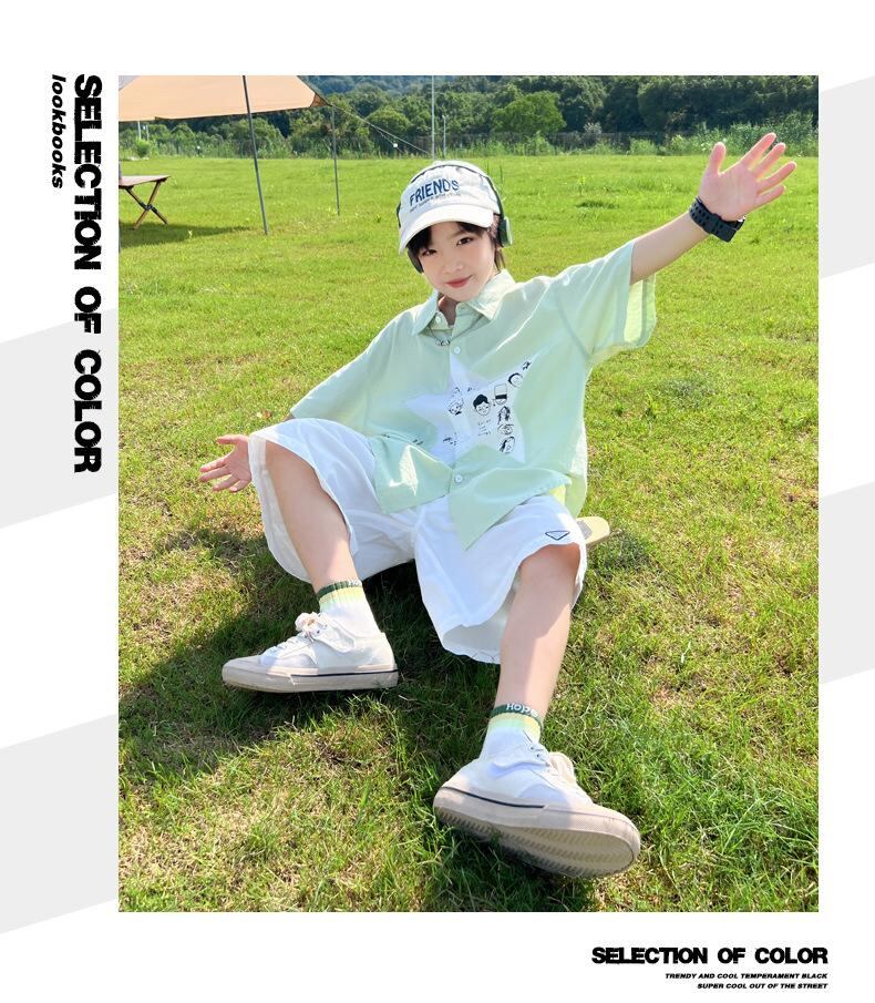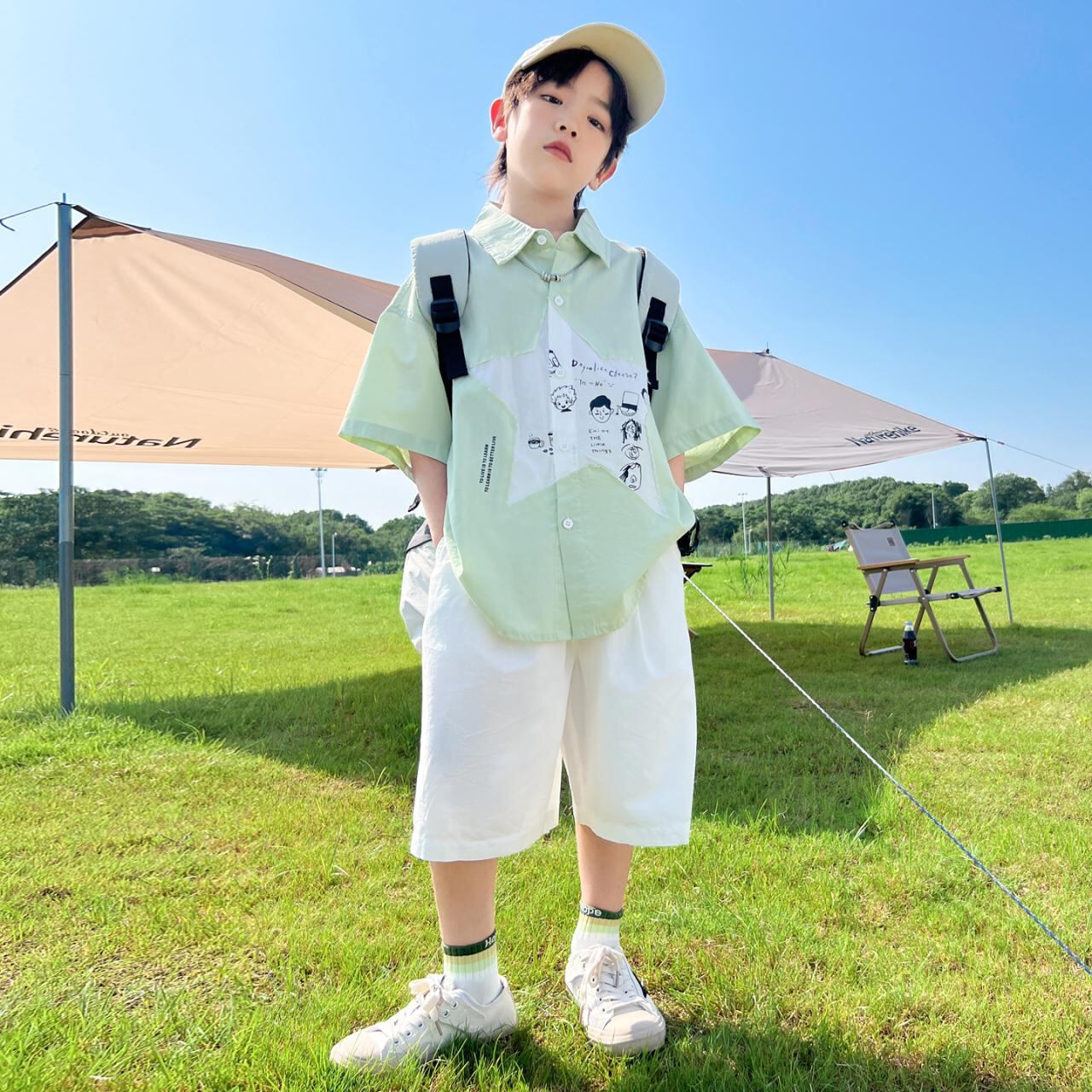 子供用シャツ 短パン セットアップ 男の子 半袖 綿100% 子供服 2点セット 春夏 キッズ ボーイズ 翻領 ゆったり 普段着 ルームウェア アウトドア