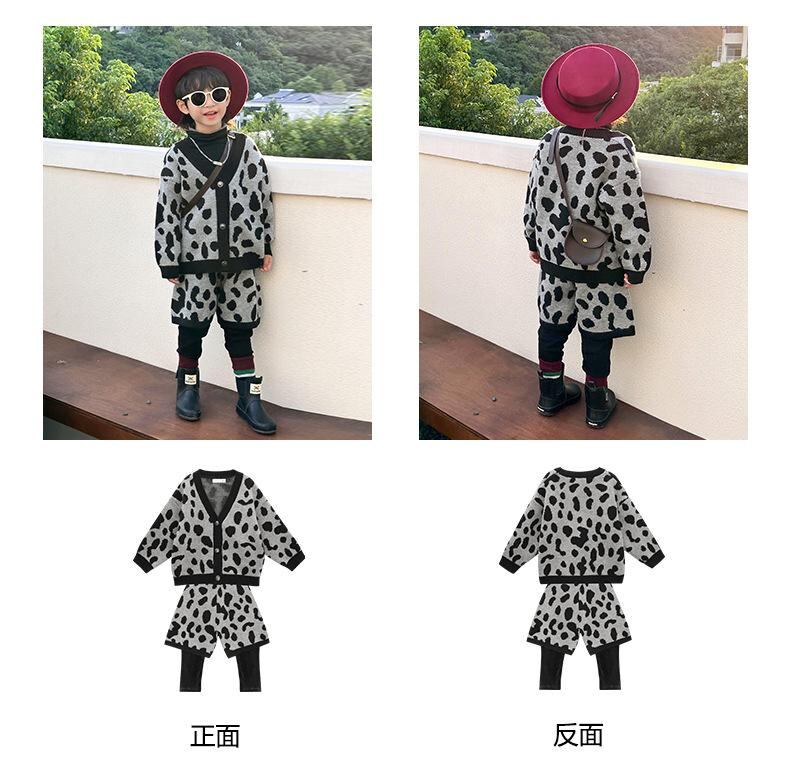 キッズ ニット カーディガン セットアップ 春秋 長袖 長ズボン 2点セット 男の子 子供服 ヒョウ柄 アウター