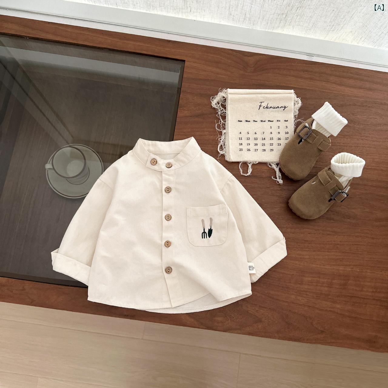 キッズ 長袖シャツ パンツ 上下セット 春秋 韓国風 ベビー 男の子 幼児 子供服 コットン 刺繍 ワークパンツ カジュアル