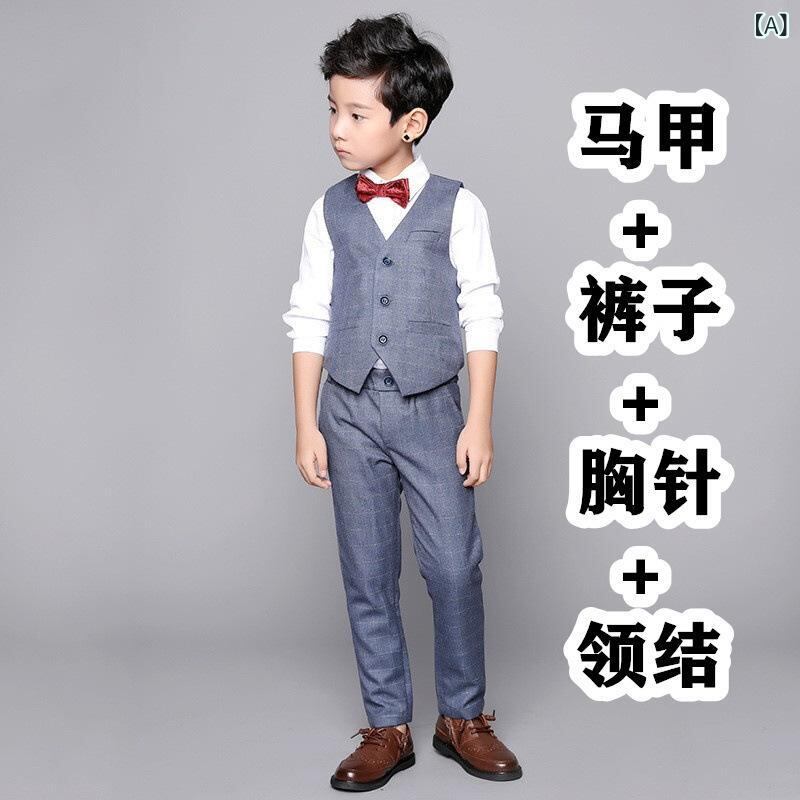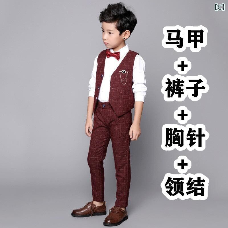 子供用スーツ 男の子 フォーマル 春秋 ベスト パンツ 2点セット 小学生 発表会 結婚式 グレー系 ブラック系 レッド系
