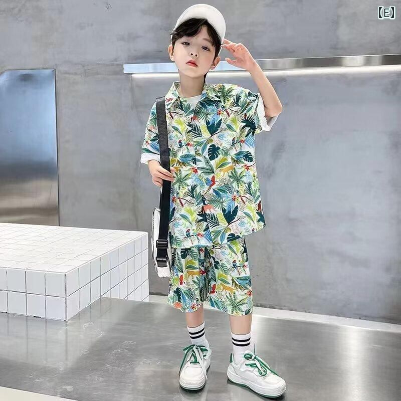 キッズ 男の子 夏 セットアップ アロハシャツ ハーフパンツ リゾート バケーション おしゃれ かわいい 子供服 サマーウェア 個性的 薄手 快適 普段着