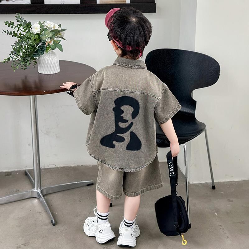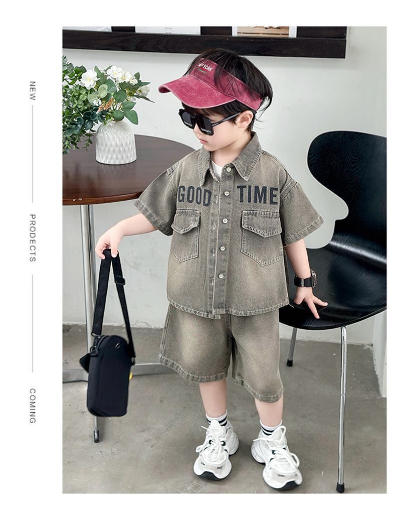 子供服 夏セットアップ 男の子 デニム 半袖シャツ 短パン 上下セット 韓国風 薄手 通園 普段着