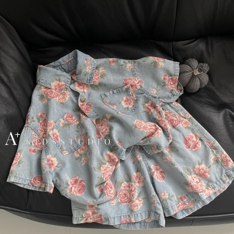子供服 男女兼用 レトロ柄 セットアップ 半袖シャツ ショートパンツ 上下セット 薄手 通園 普段使い