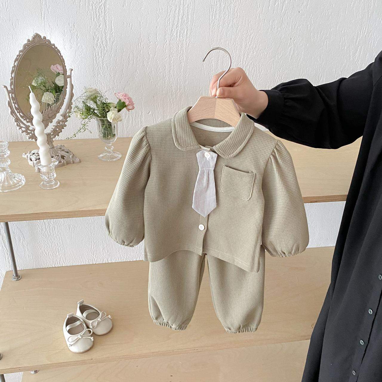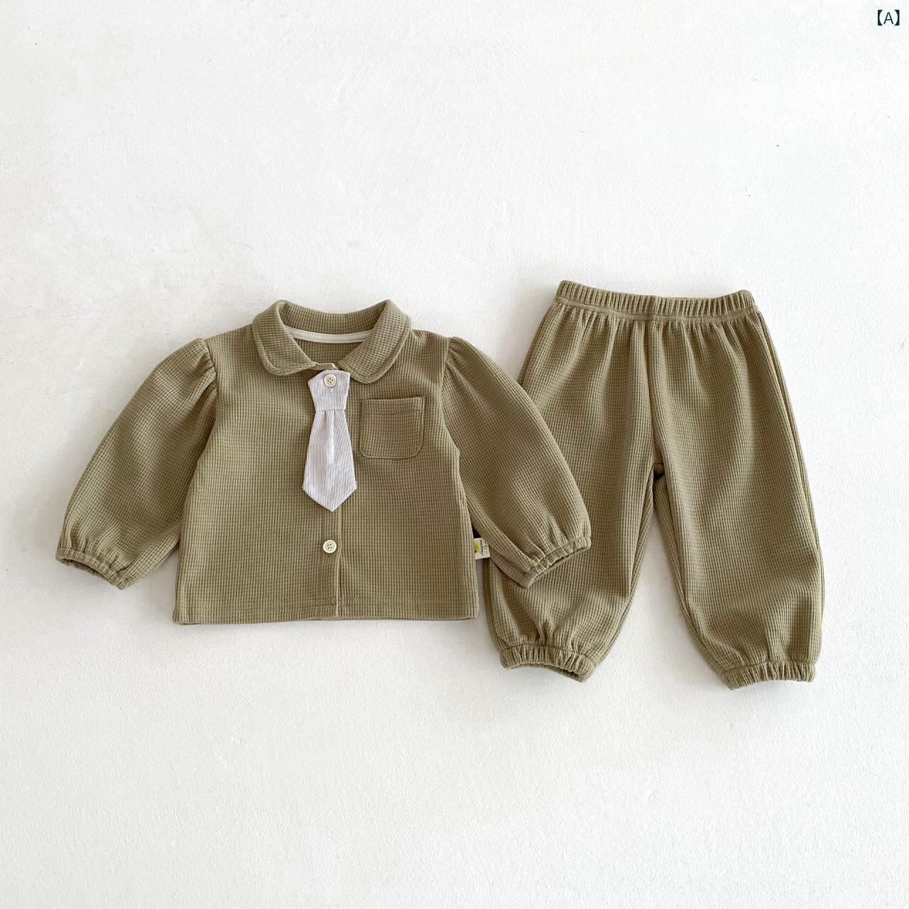 子供用セットアップ 春秋 長袖シャツと長ズボンの2点セット 無地 コットン カジュアルスタイル 韓国風 73CM 80cm 90cm 100cm 110cm