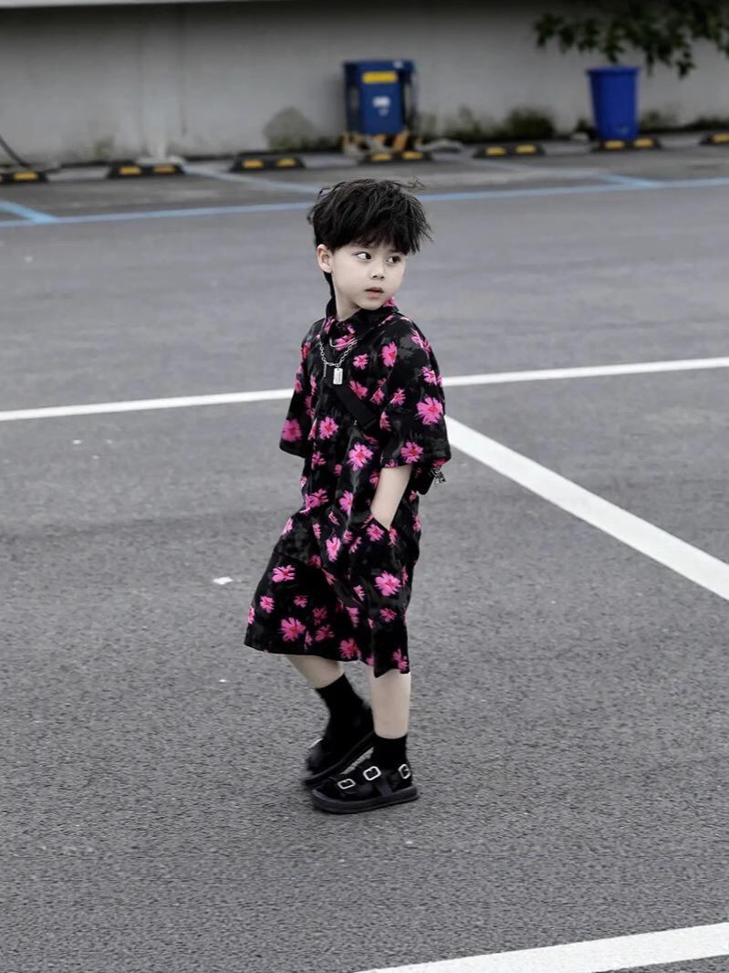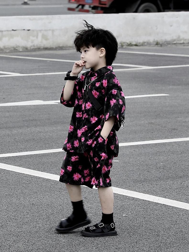 キッズ 男の子用 半袖シャツ & パンツ セットアップ 子供服 夏 ビーチ リゾートスタイル 綿 薄手 花柄 90 100 110 120 130 140 150 160 170cm