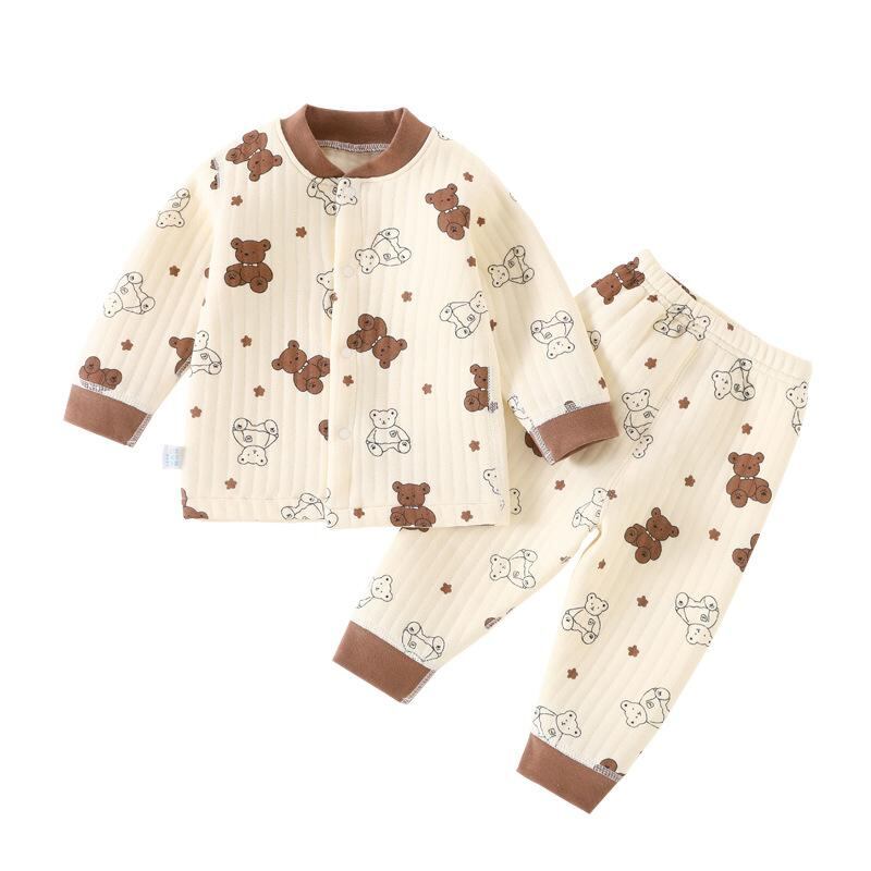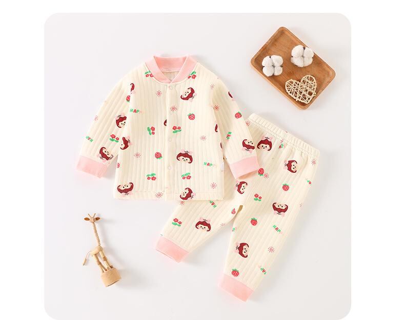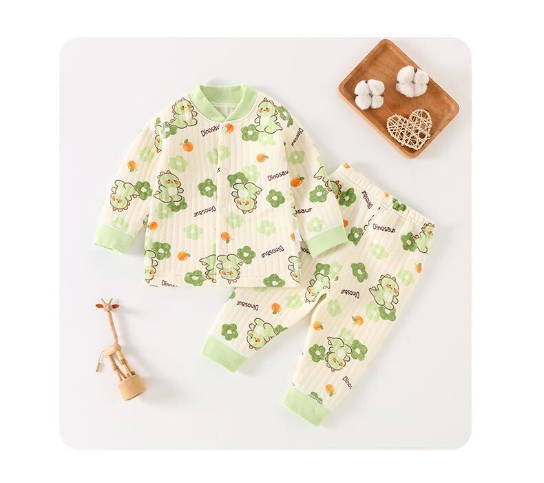 ベビー 赤ちゃん あったか インナー 上下セット 秋冬 長袖 A類 コットン 冬服 厚手 66 73 80 90 100 パジャマ 部屋着 かわいい ストロベリー ドール グリーン 恐竜 テディベア