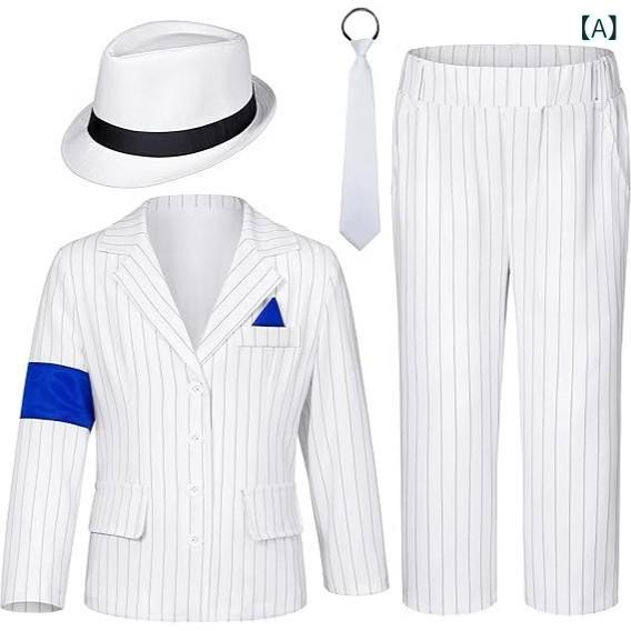 キッズ コスプレ衣装 ジャケット パンツ 上下セット 男性用 女性用 男女兼用 白 ストライプ 舞台 演出服 ステージ衣装 ハロウィン 仮装 発表会