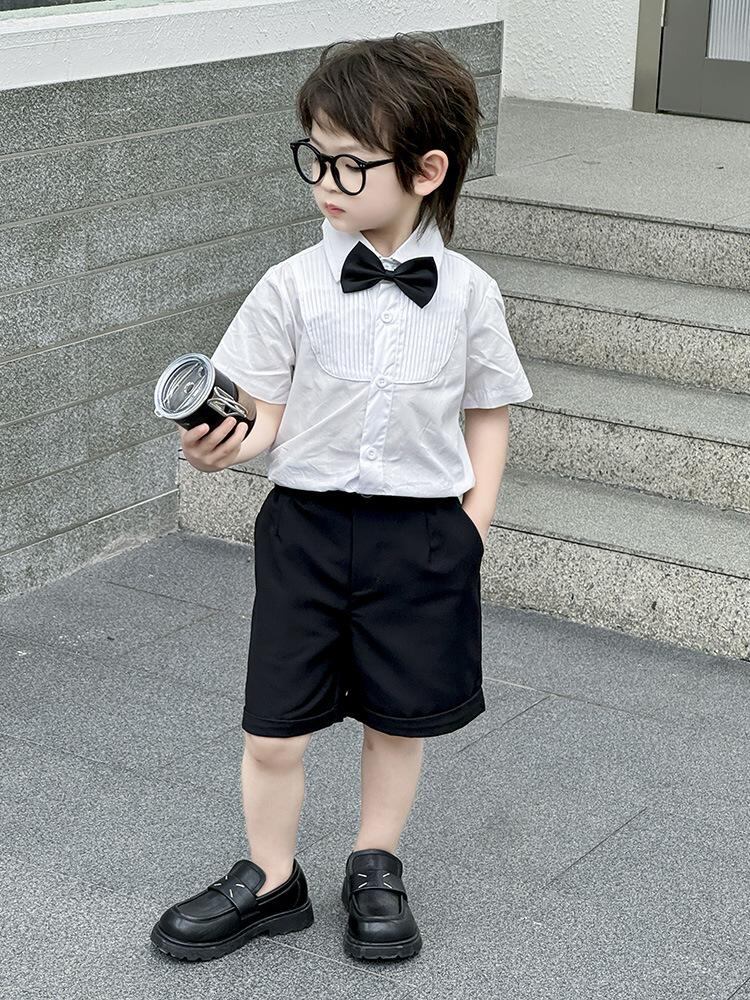 子供用フォーマルウェア 男の子 半袖シャツ & ハーフパンツ セットアップ キッズ 結婚式 発表会 演奏会 舞台衣装 子供スーツ 上下セット おしゃれ ボーイズ
