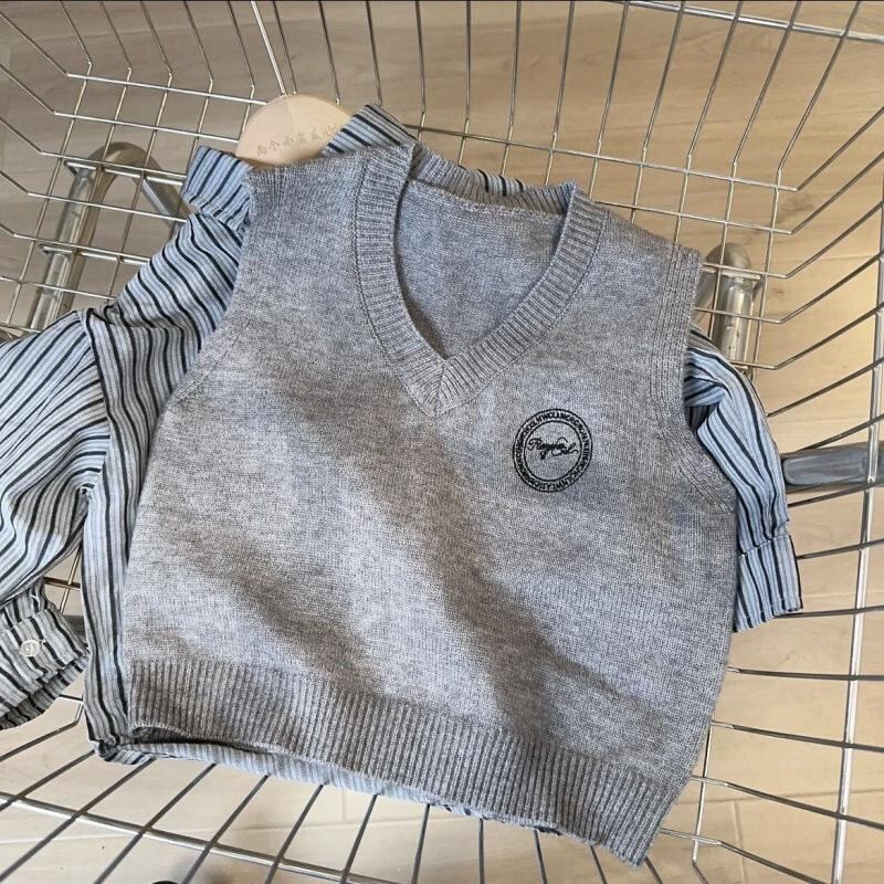 キッズ 男の子 フォーマル スーツ 3点セット ニットベスト 長袖シャツ 長ズボン 子供服 春秋 発表会 結婚式 グレー 紺色 入園式 卒園式 普段着