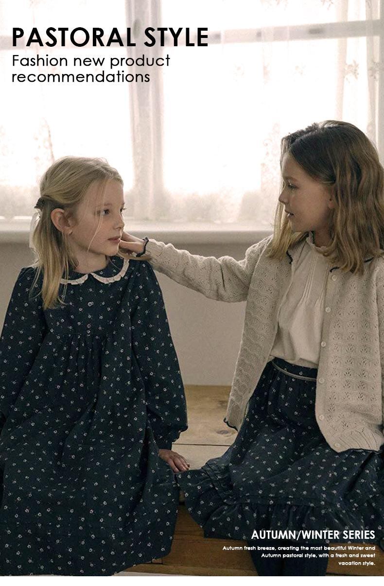 子供服 パンツセット 女児用 秋冬 全綿 コーデュロイ ワイドレッグパンツ フラワープリント スカート 上下セット 90 100 110 120 130 140