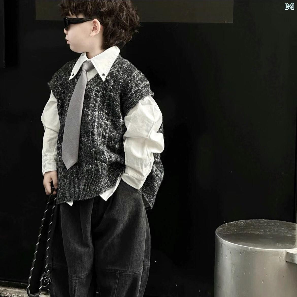 子供服 ニットベストセット 男児 長袖シャツ デニムパンツ 3点セット 春秋 韓国風 コットン 幼児 男の子