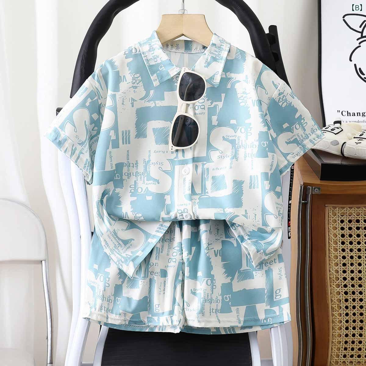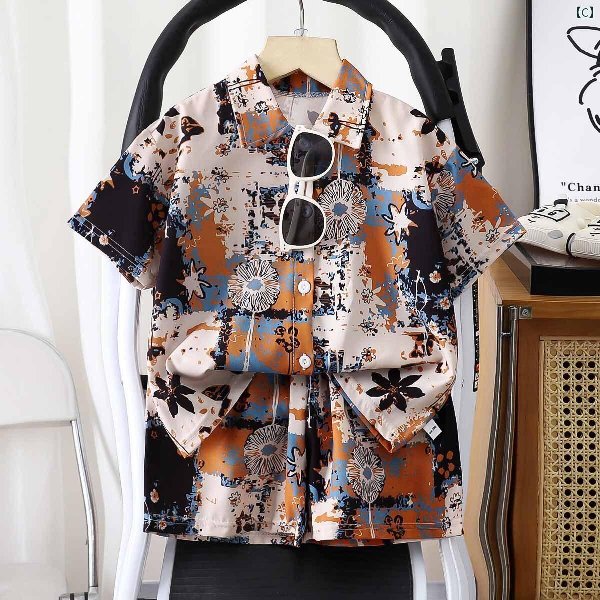 子供服 シャツ 男の子 女の子 半袖 花柄 トップス 襟付き カジュアル シャツ & パンツ 上下セット 綿混紡 春夏 かわいい おしゃれ キッズ ボーイズ ガールズ 幼児 小学生