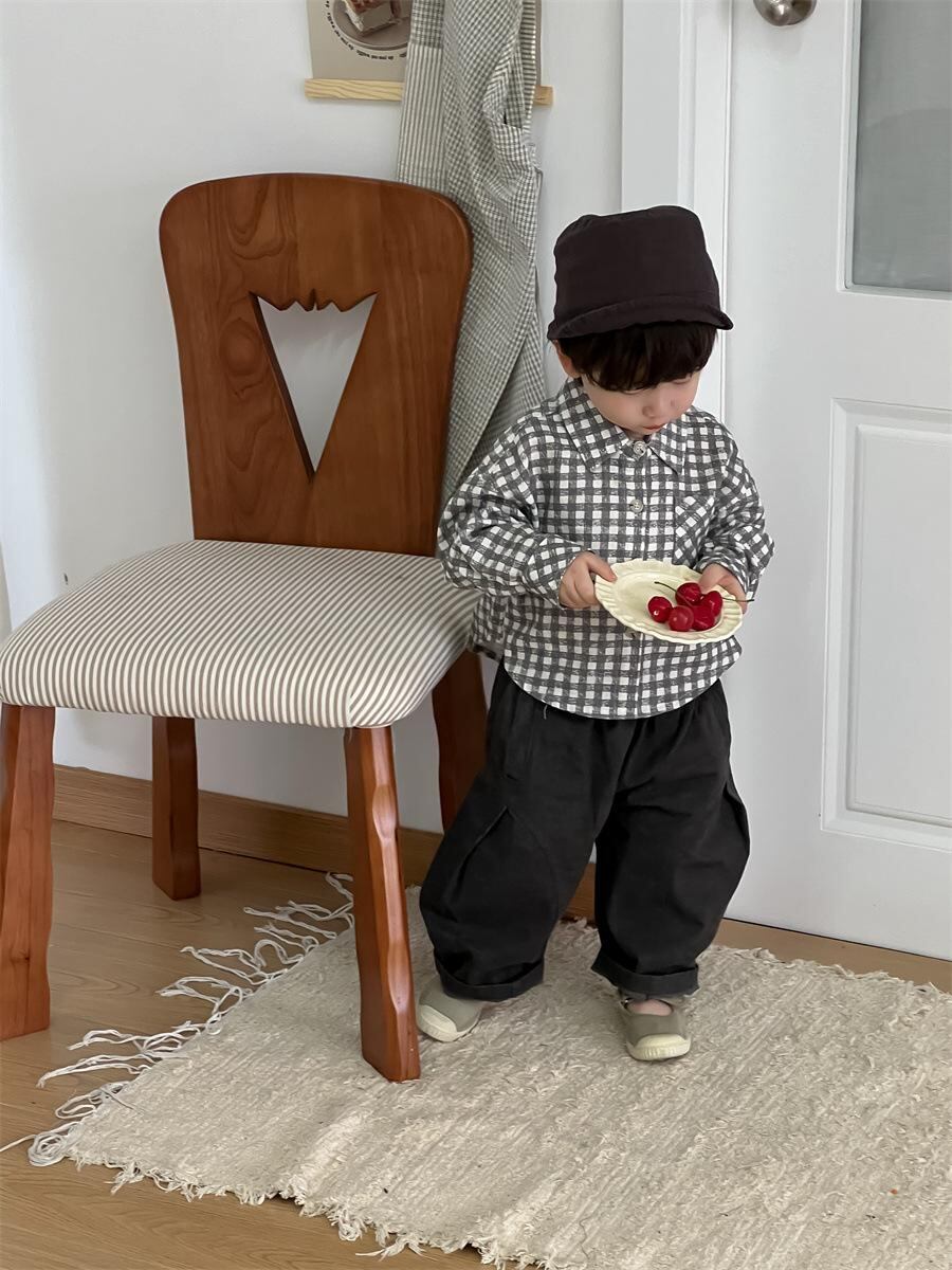 子供服 上下セット 男児 秋物 チェック柄 長袖シャツ 長ズボン 2点セット 幼児 ベビー服 かわいい おしゃれ コットン