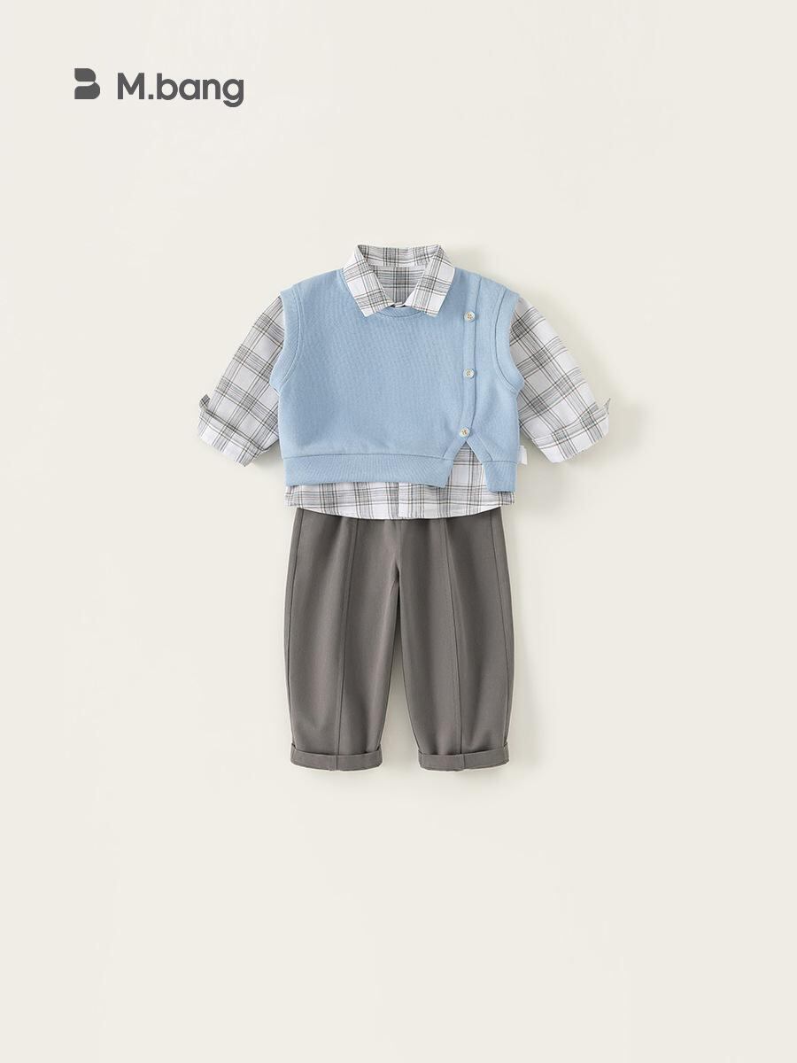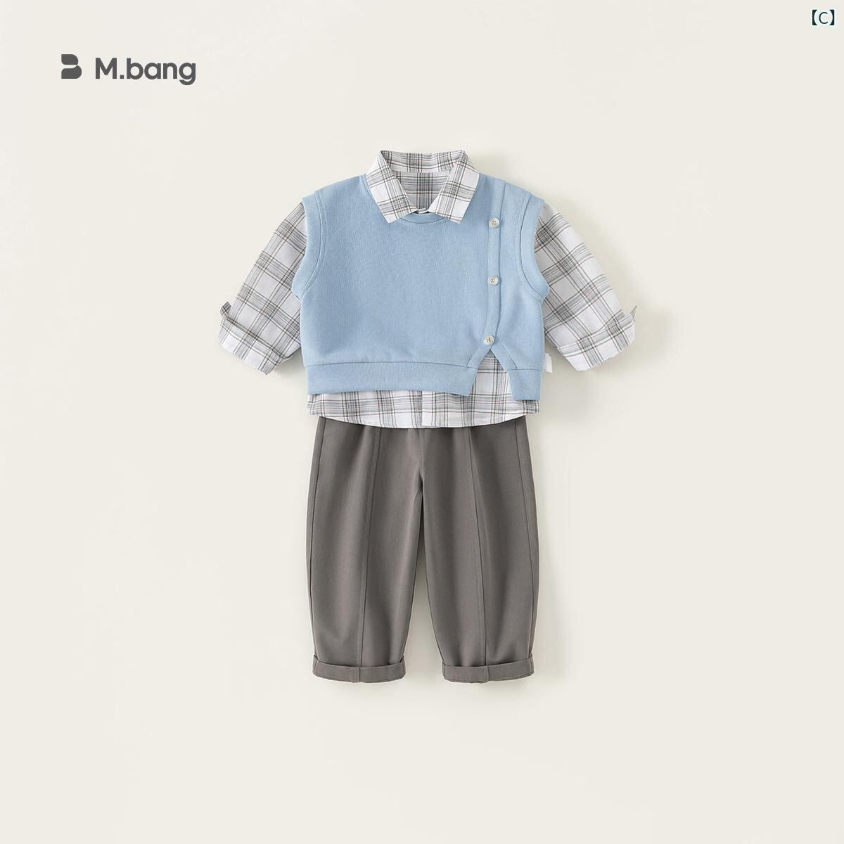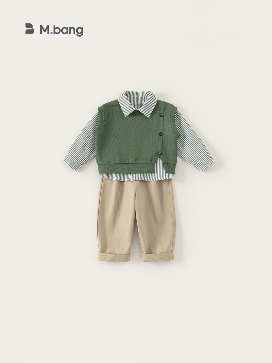キッズ 男の子 シャツ ベスト パンツ 3点セット 春秋 カジュアル 子供服 80 90 100 110 120 130 140 グリーン ブルー