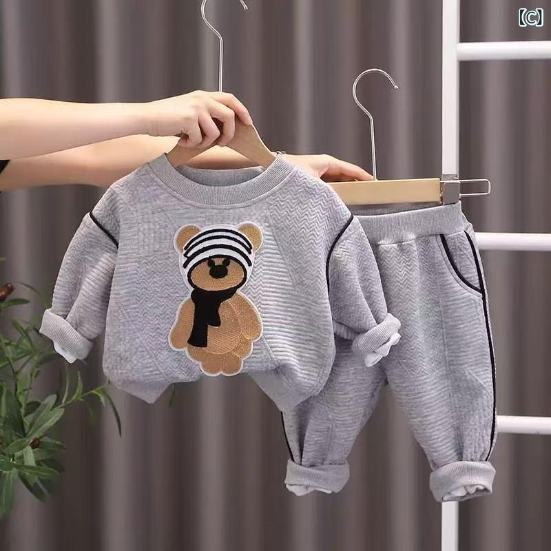 子供用セットアップ 長袖トップス パンツ 上下セット 春秋 ベビー 幼児 男の子 女の子 カジュアル 普段着 かわいい クマ柄 80 90 100 110 120 | Kneebaファッションショップ