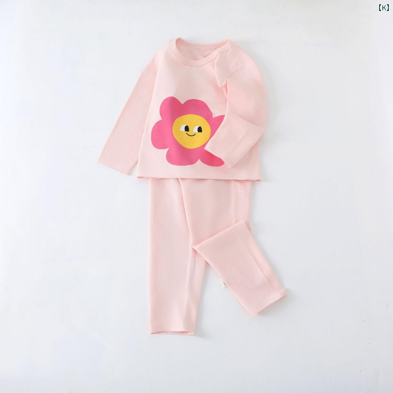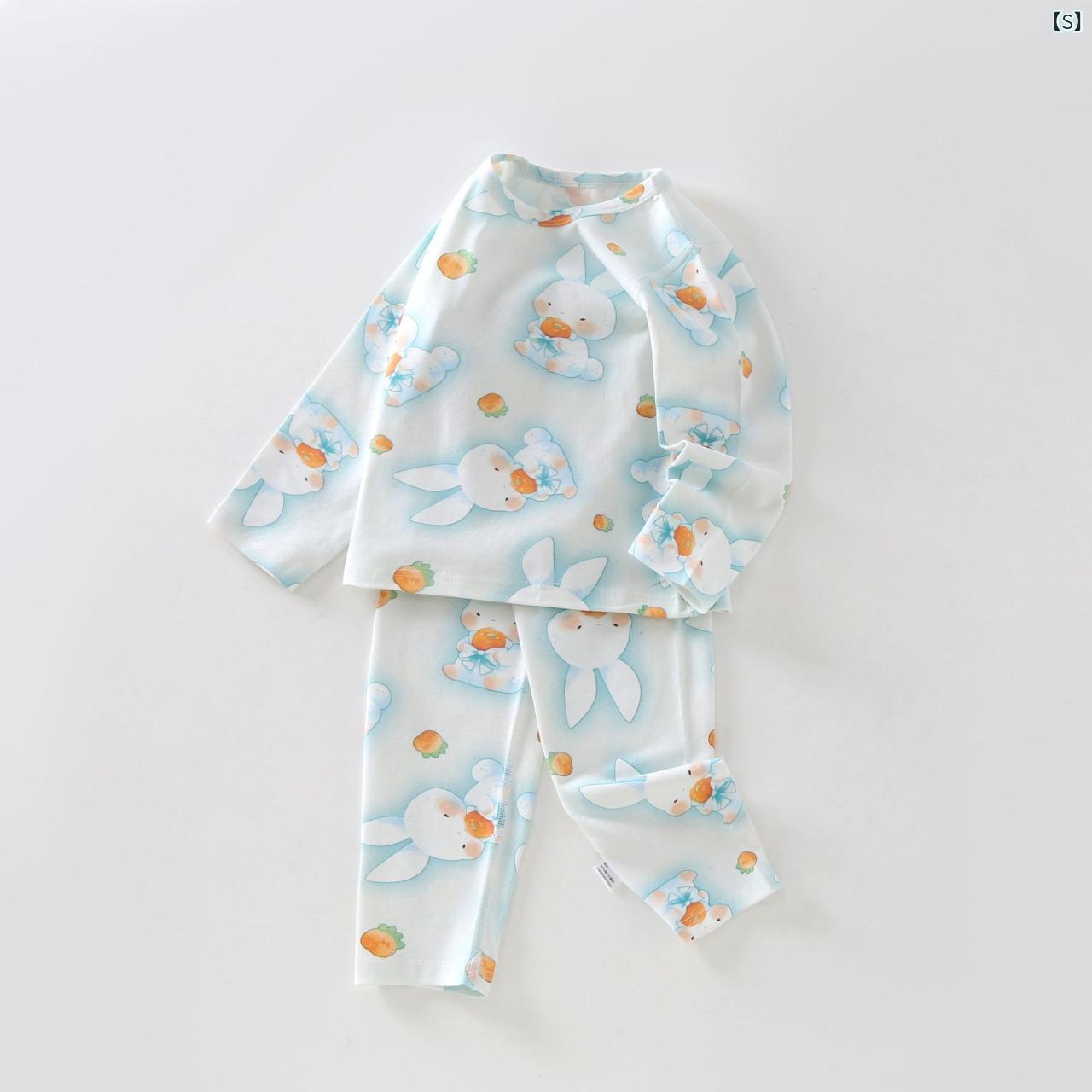 ベビー服 秋冬 長袖 トップス パンツ 上下セット 綿 ライクラ素材 動物柄 チェック柄 カートーン柄 水玉模様 柔らかい 伸縮性 吸湿性 通気性 部屋着 パジャマ