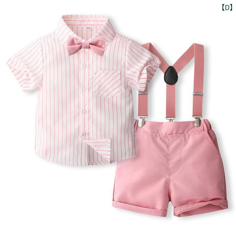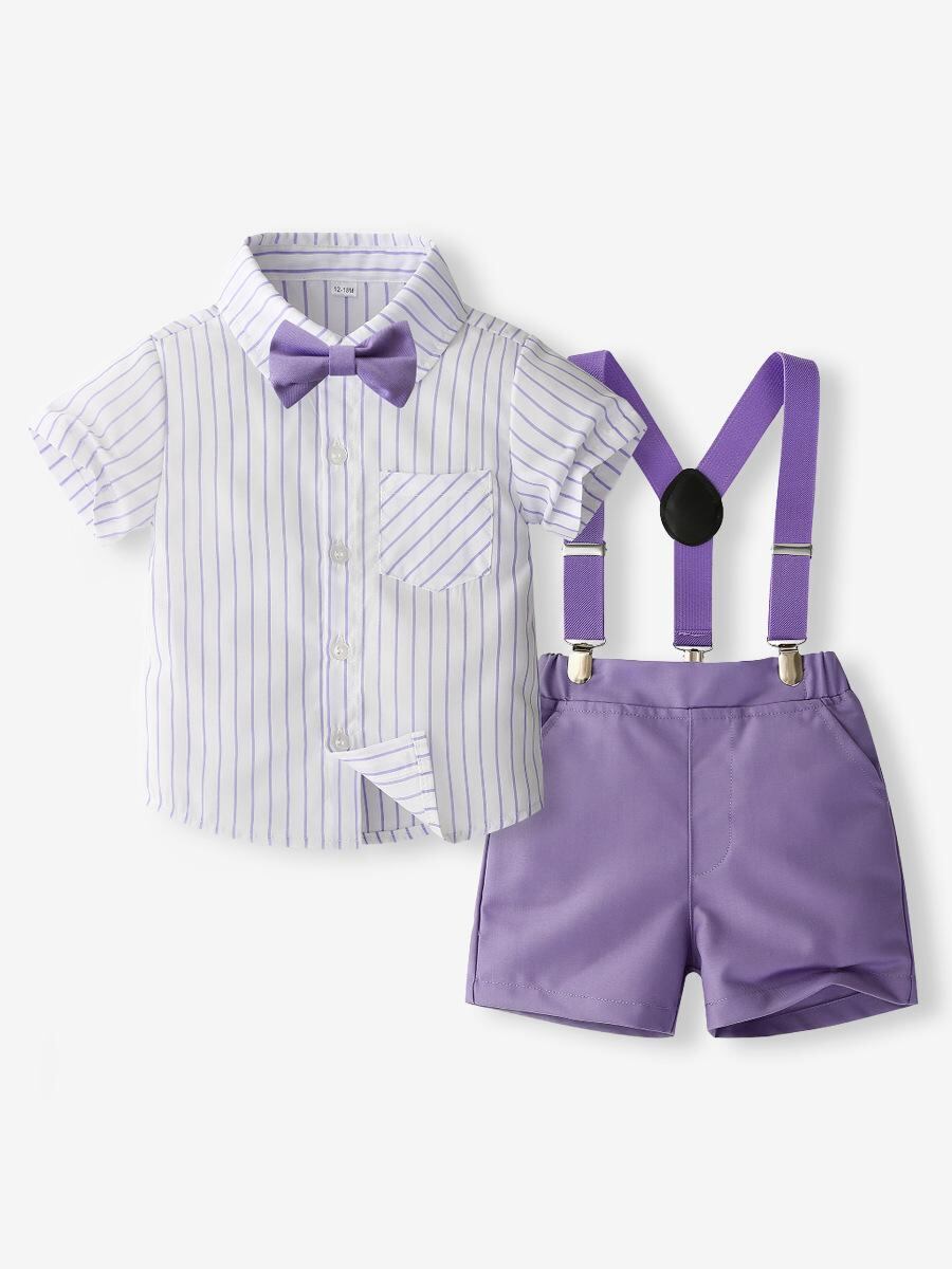 キッズ フォーマル スーツ 男の子 夏物 半袖 ストライプ シャツ ショートパンツ 3点セット 英国風 結婚式 発表会