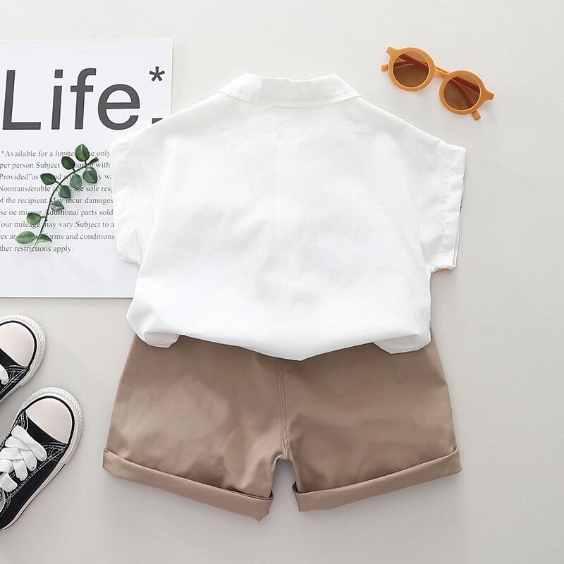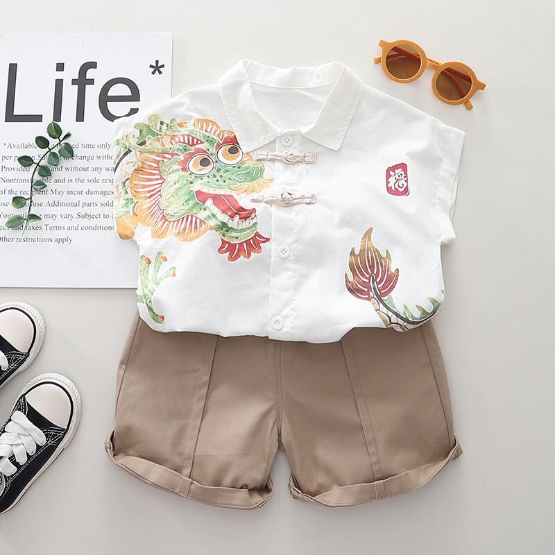 キッズ 子供用 半袖シャツ & ハーフパンツ 上下セット 綿100% 薄手 スポーツ カジュアル 普段使い 春夏 かわいい ドラゴン アニマル柄 ホワイト系