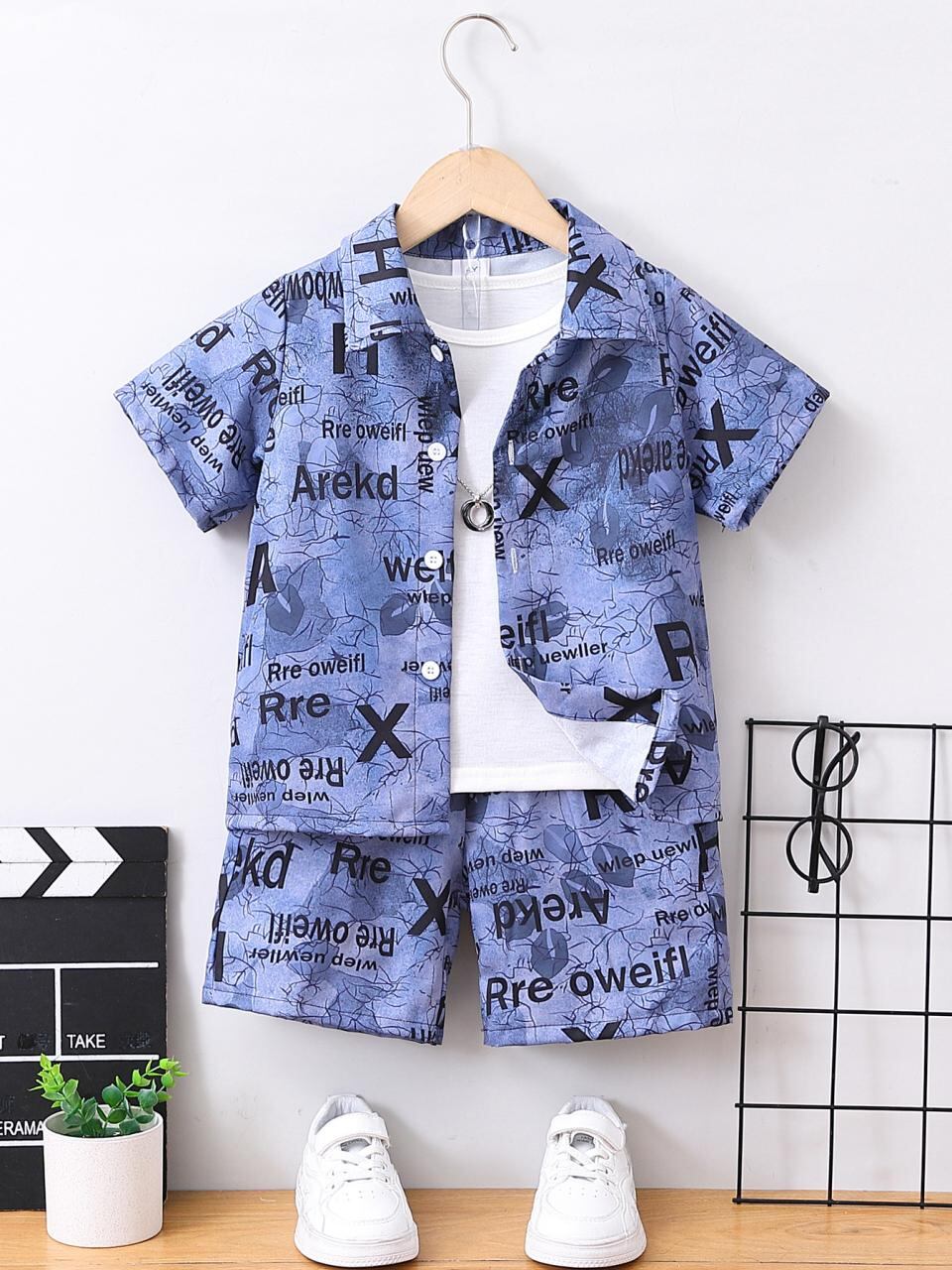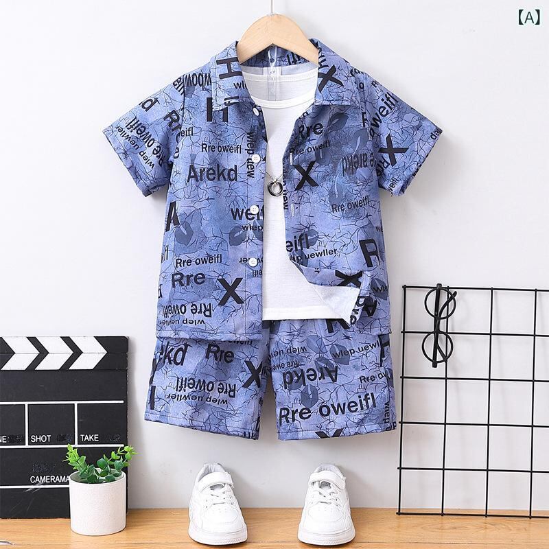 キッズ 男の子用 半袖シャツ ショートパンツ 上下セット 夏服 花柄 オープンカラー 薄手 涼しい 普段着 部屋着