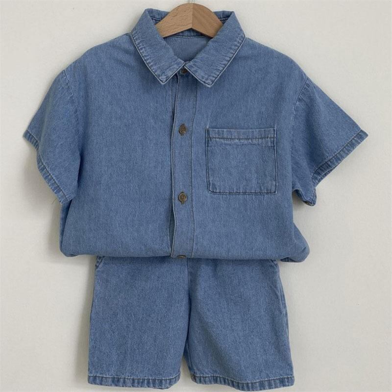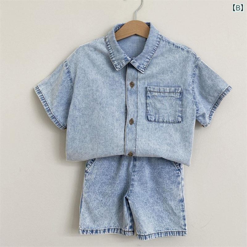 子供服 夏物 セットアップ 半袖シャツ ショートパンツ かわいい ベビー キッズ 男の子 女の子 デニム 上下 2点セット 接触冷感