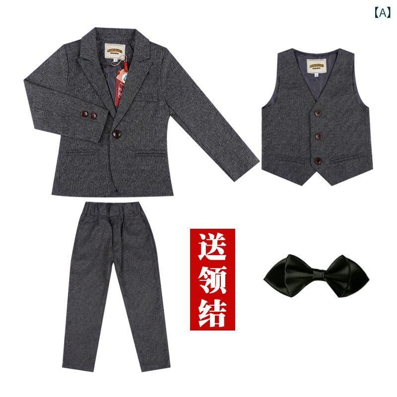子供用フォーマルスーツ 男の子用タキシード ジャケット&パンツ&シャツ 3点セット/4点セット/5点セット 秋冬用 無地 発表会 結婚式 入園式 卒園式 グレー/ブルー