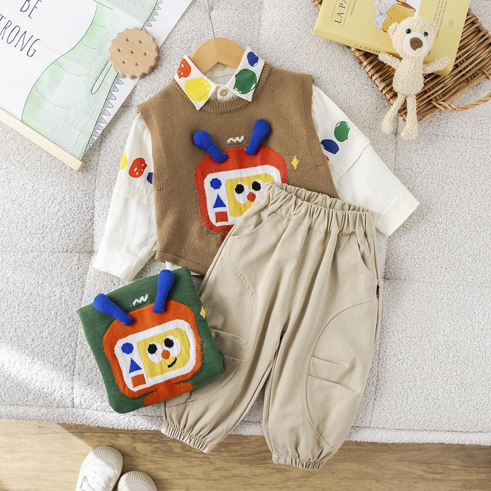 子供服 ニットベスト セット 春秋 ベビー服 男の子 長袖シャツ パンツ 3点セット 幼児 普段着 かわいい おしゃれ 80 90 100 110 120cm