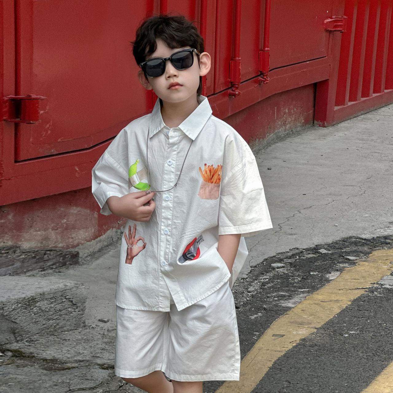 子供服 男の子 半袖シャツ ショートパンツ 上下セット 薄手 綿100% カジュアル 赤色 白色 100cm 110cm 120cm 130cm 140cm 150cm 160cm