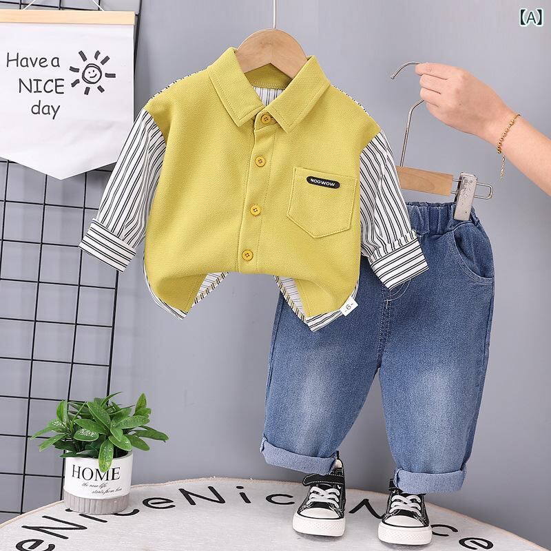 シャツ キッズ 長袖 2点セット 春秋 ストライプ 綿100% カジュアル 男の子 女の子 幼児 普段着