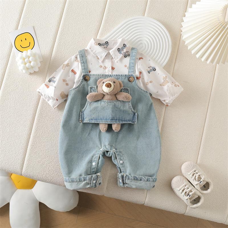 ベビー服 上下セット 春秋 長袖シャツ デニムオーバーオール 2点セット 乳幼児 男の子 女の子 かわいい 韓国風 コットン